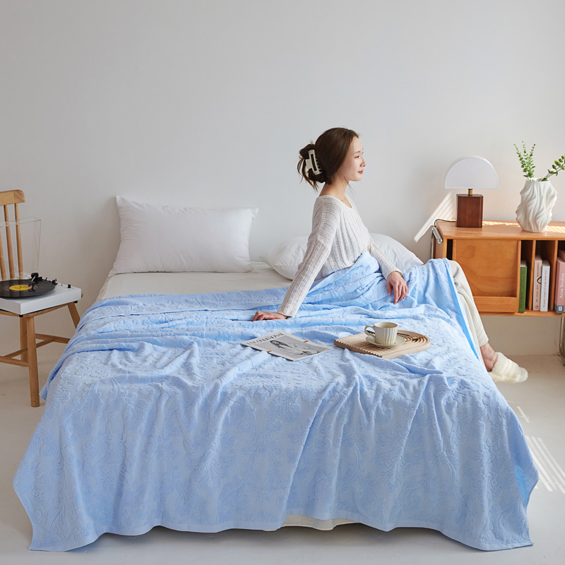 商品名称:乐家毛巾被 2023新款欧雅老式毛巾被 欧雅浅蓝