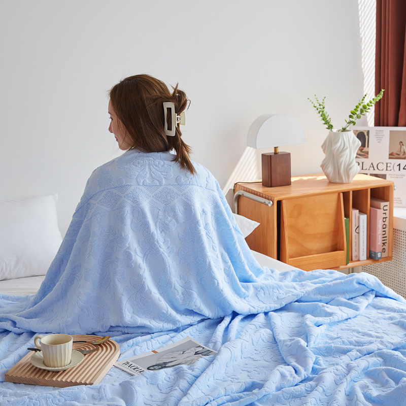 (总)乐家毛巾被(工厂自产自销) 2024新款全棉镂空毯系列,蓝色,浅灰色,深灰色,青色,粉色,黄色