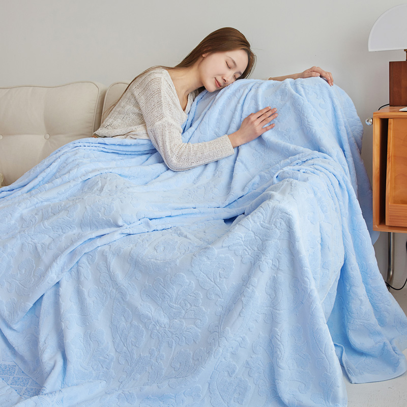 乐家毛巾被 2023新款欧雅老式毛巾被 欧雅浅蓝