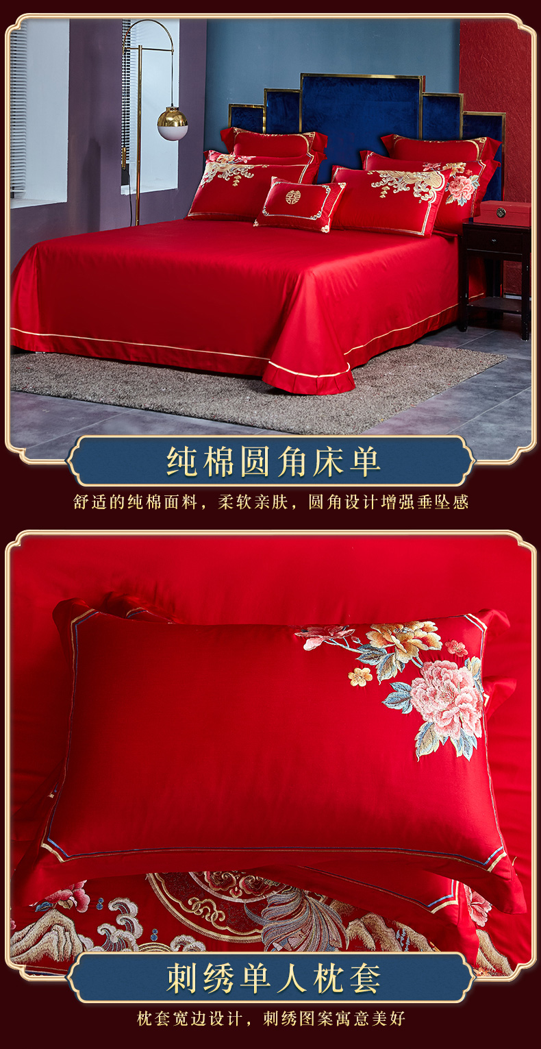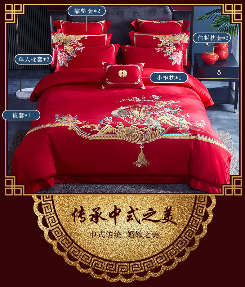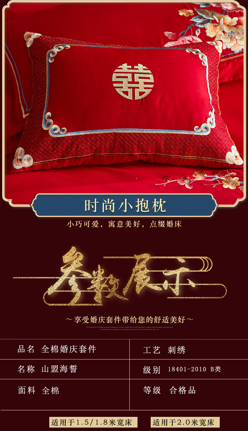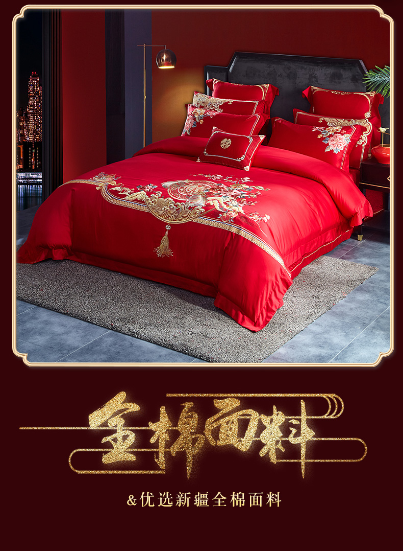 当前位置: 91家纺网 > 商品网购 > 床品套件 > 四件套 > 婚庆四件套 > (总)高大尚婚庆馆 2023新款春夏新品40s长绒棉婚庆尊享系列-山盟海誓