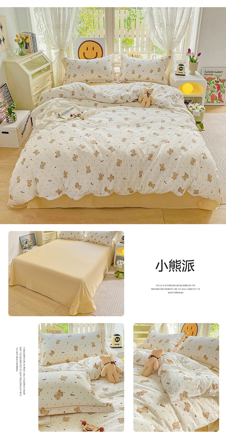 商品名称:乐童 2024新款直播爆款A类全棉双层纱工艺款四件套 小熊派