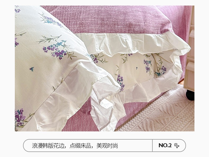 商品名称:清雅福 2024新款全棉13372韩版花边款系列单品枕套 薰衣草