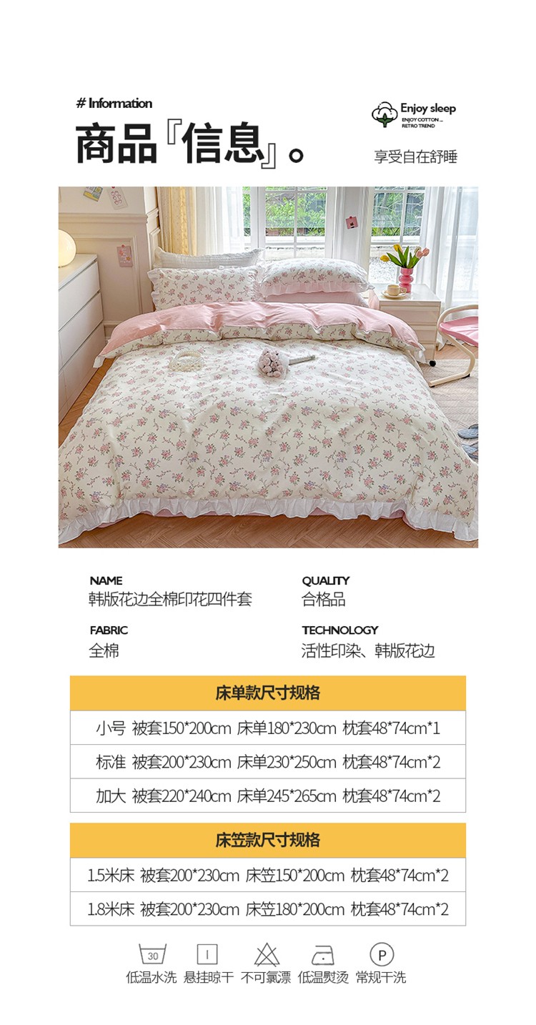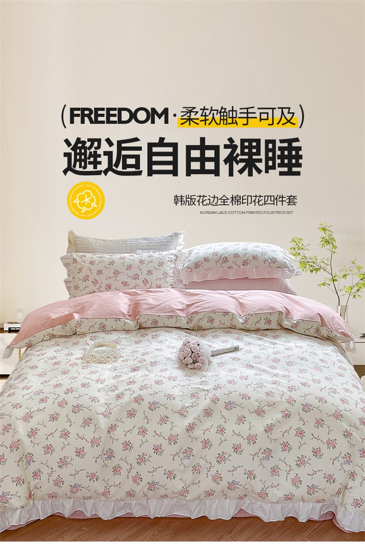 商品名称:清雅福 2024新款全棉13372韩版花边款系列四件套 柔香