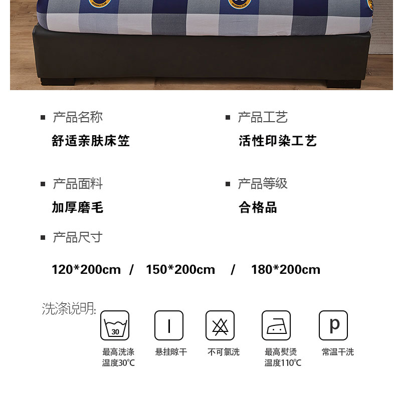 • 91家纺网 家纺一手货源 找家纺 佑佳家纺 2024新款磨毛印花植物羊绒舒适亲肤单床笠 格莱雅