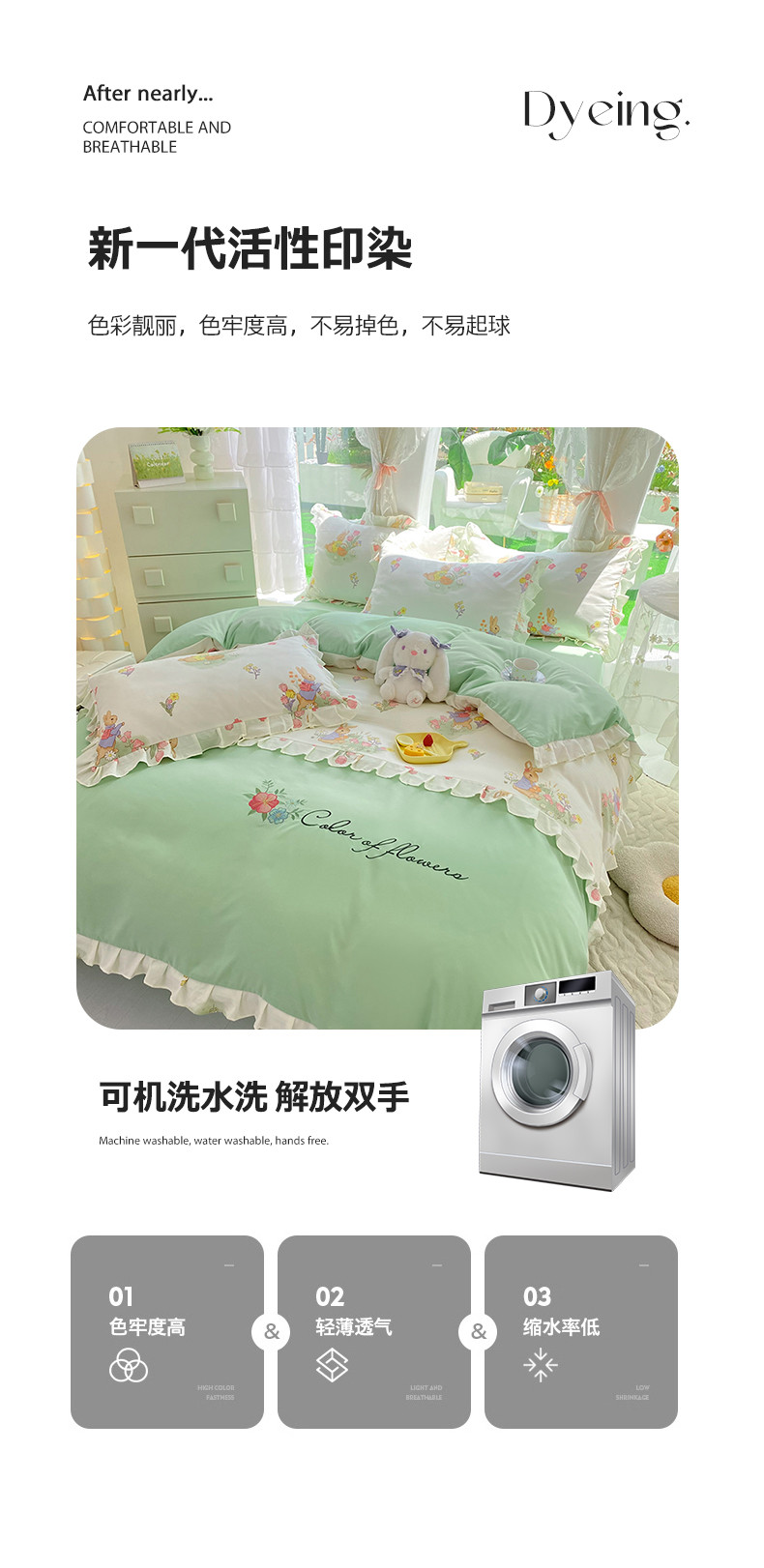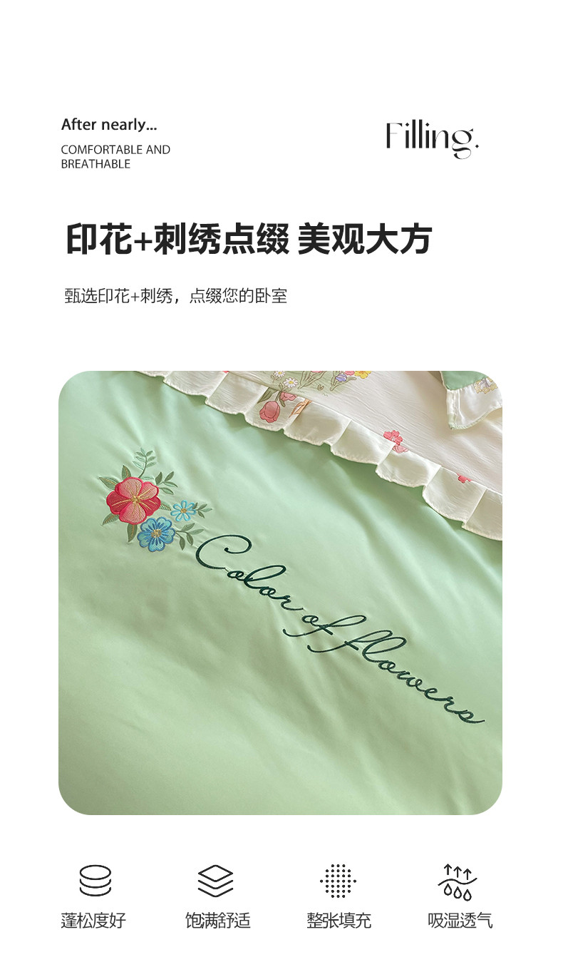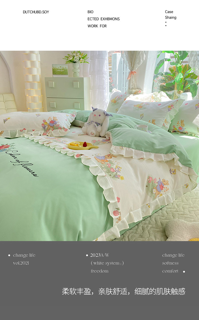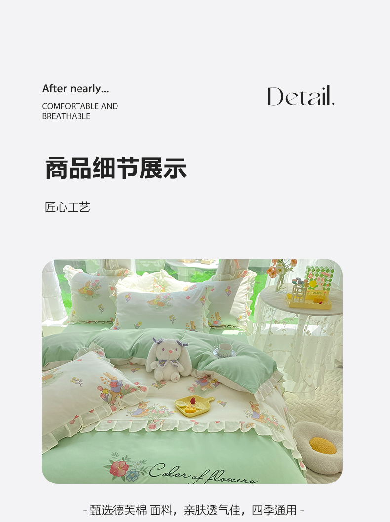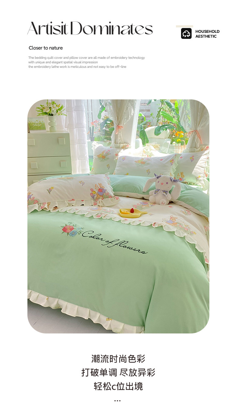 当前位置: 91家纺网 > 商品网购 > 床品套件 > 四件套 > 水洗棉四件套 > 易辰美 2024新款双层纱水洗磨毛德芙棉绣花四件套 田园兔