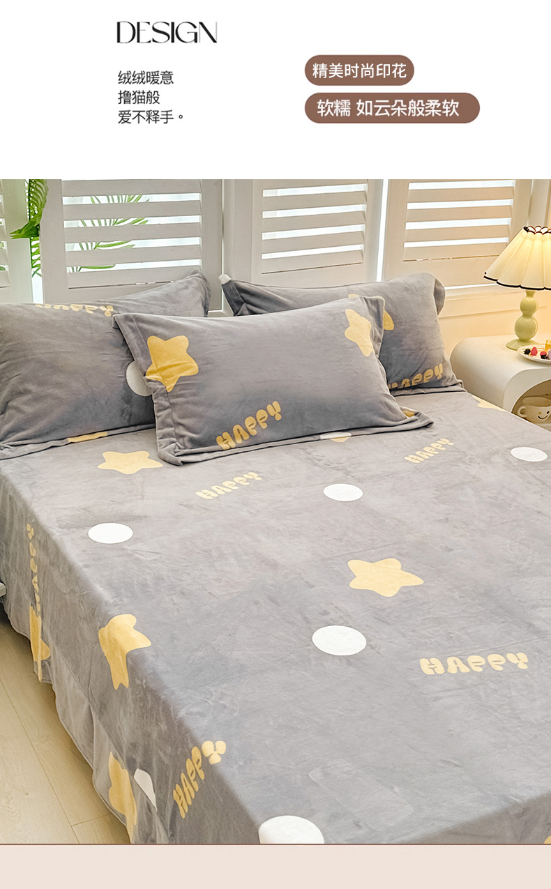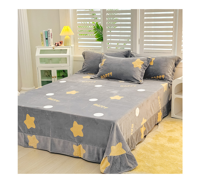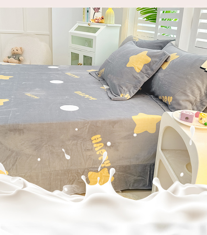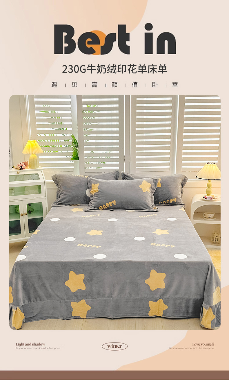 商品名称:新款230克印花牛奶绒床单定制定做尺寸 星星