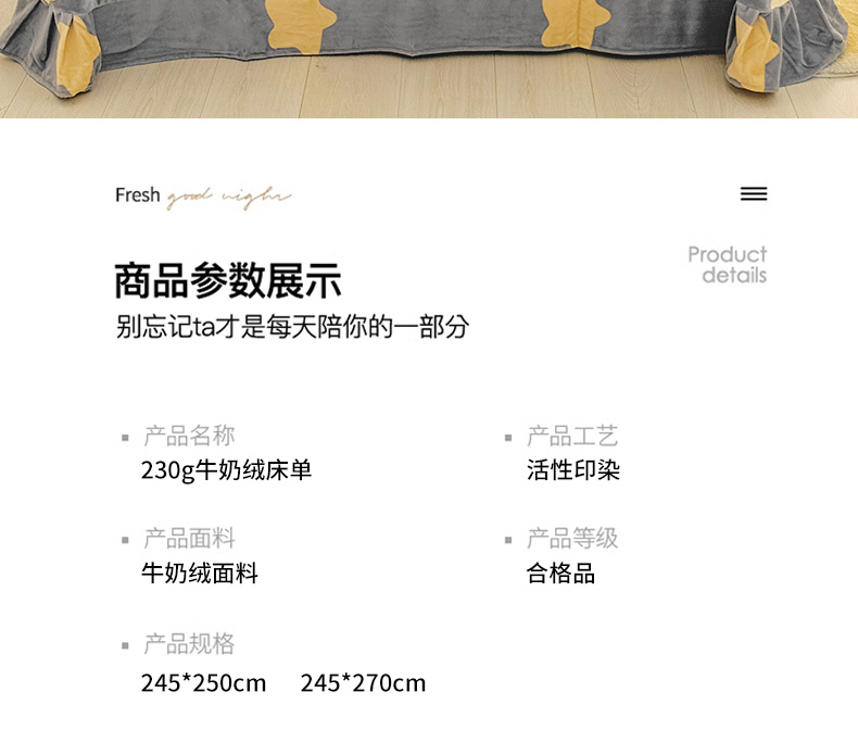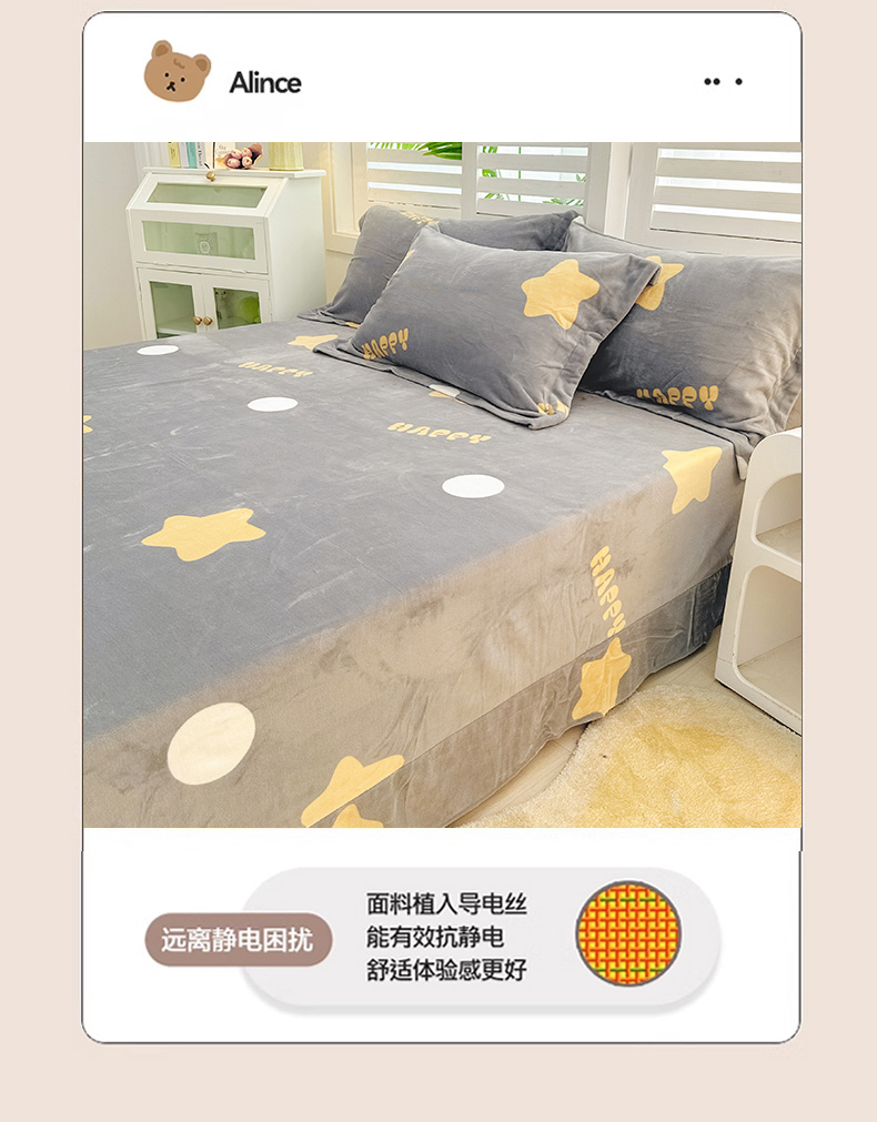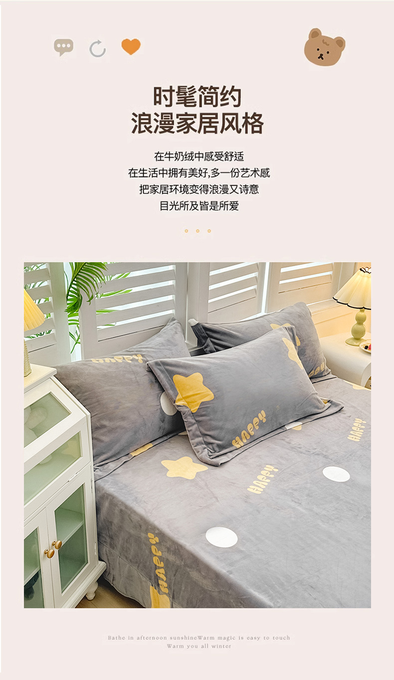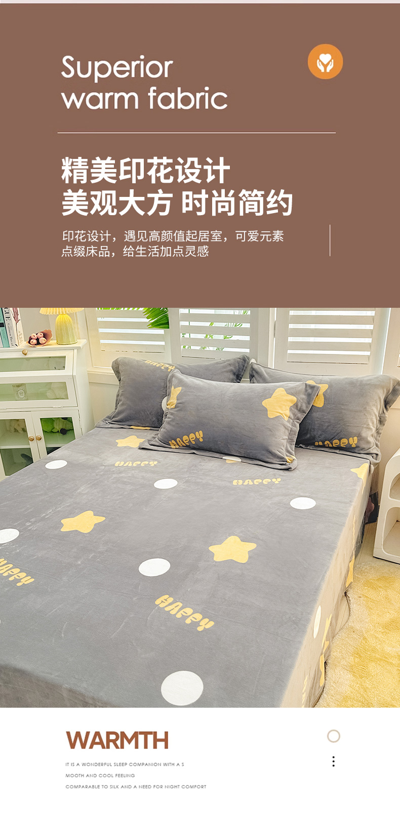 商品名称:新款230克印花牛奶绒床单定制定做尺寸 星星
