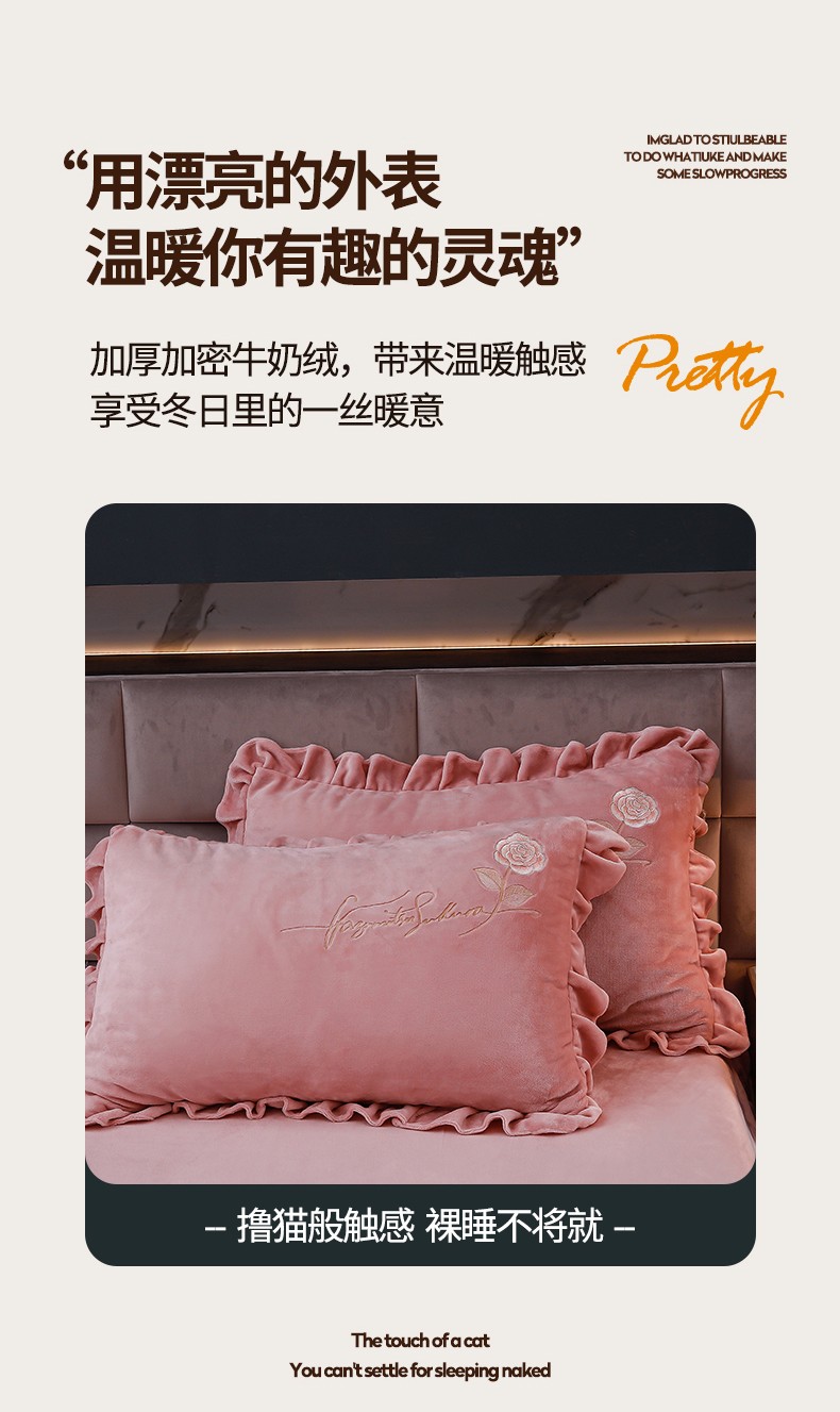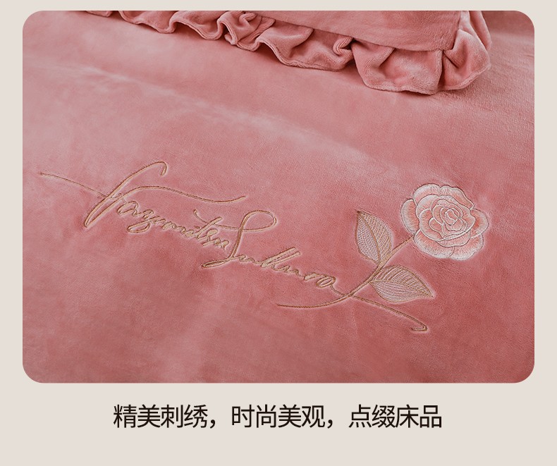 商品名称:绣女坊 2024新款韩版花边绣花牛奶绒四件套 玉色