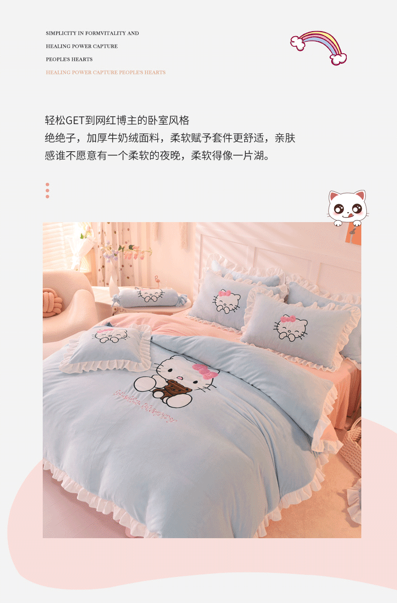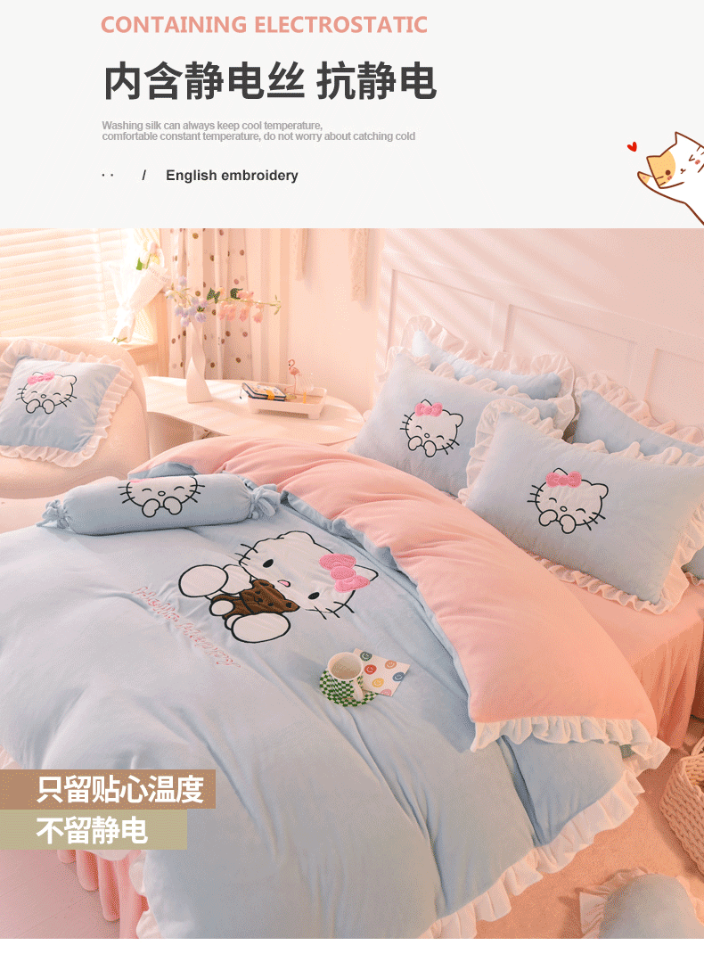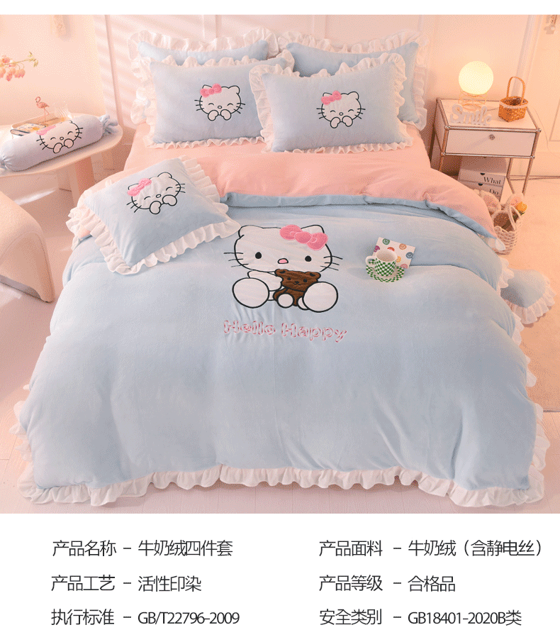 当前位置: 91家纺网 > 商品网购 > 床品套件 > 四件套 > 牛奶绒四件套 > 丝印良品 2024新款高端牛奶绒卡通刺绣牛奶绒四件套 可爱猫-蓝粉