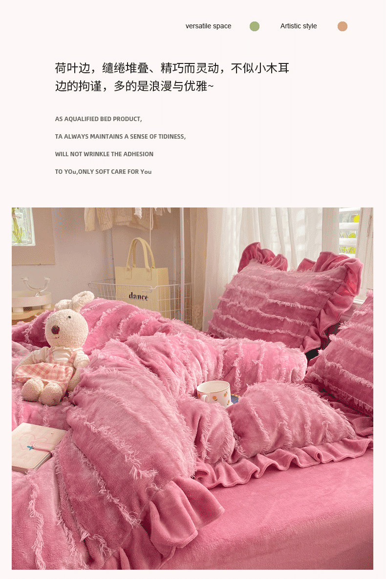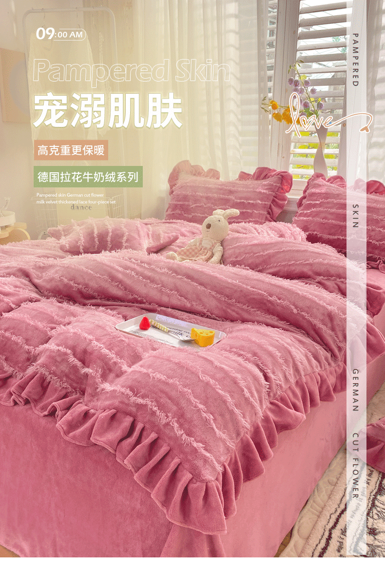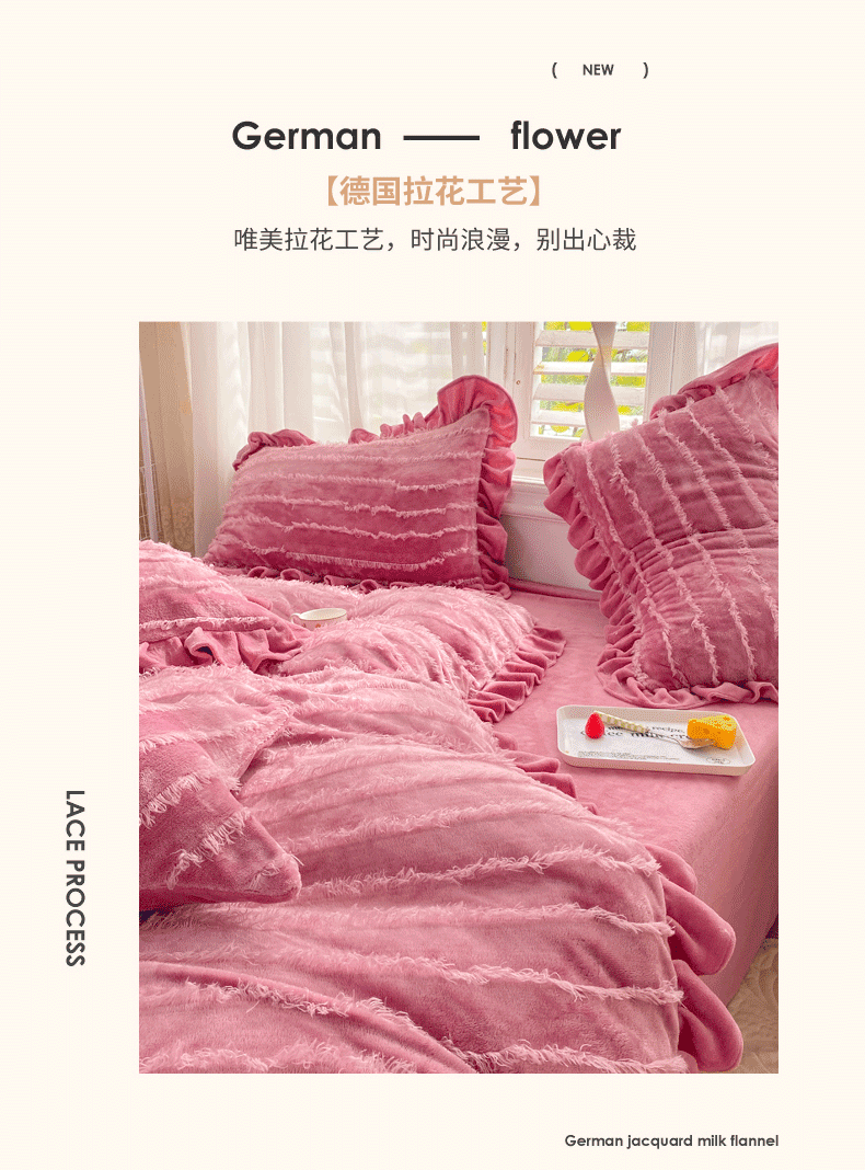 欧冠 2023新款高端牛奶绒提花四件套 豆沙红