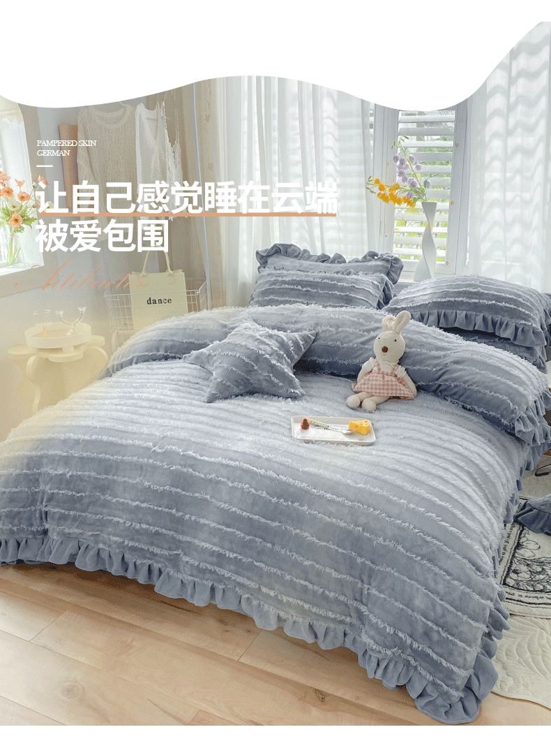 (总)丝印良品 2025秋冬新款300克条纹兔绒床笠三件套,床笠款-雪灰,床笠款-卡其,床笠款-魔幻灰,床笠款-墨绿,床笠款-森林绿,床笠款-棕灰