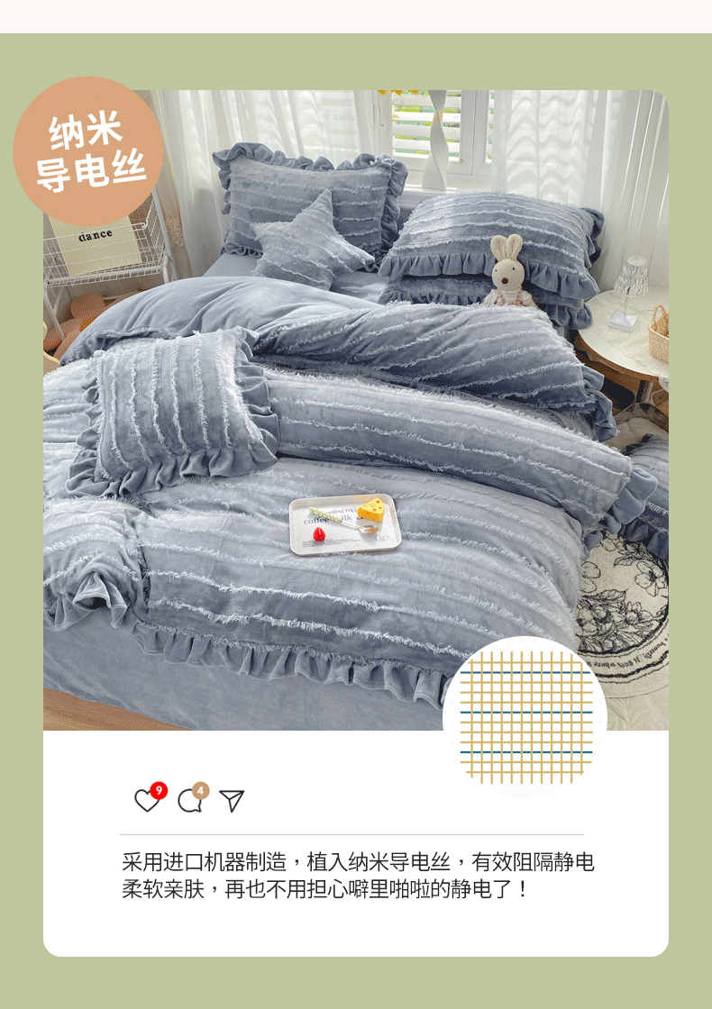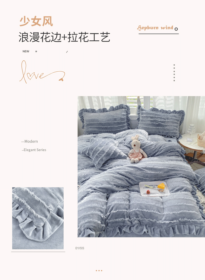 丝印良品 2023新款高端牛奶绒提花四件套 摩登灰