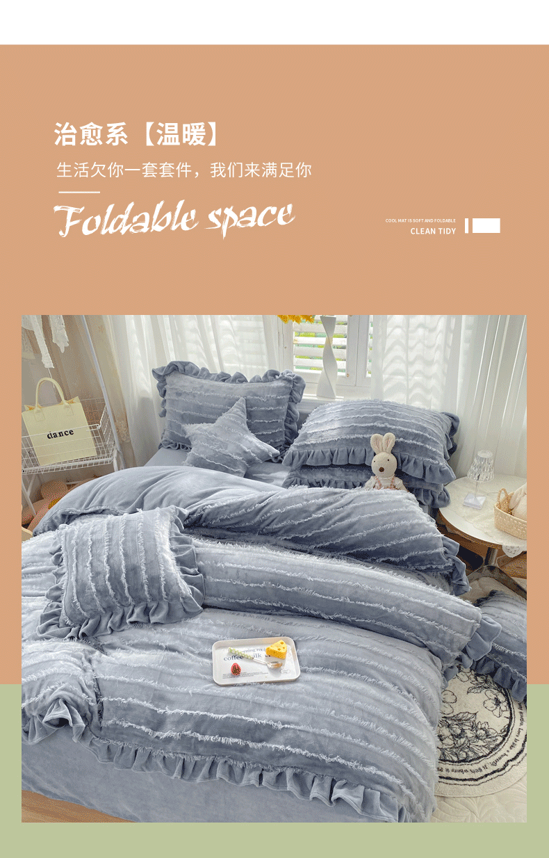 丝印良品 2024直播秋冬高克重500克床裙款泡泡四件套纯色印花七彩-高级灰,七彩-高级灰