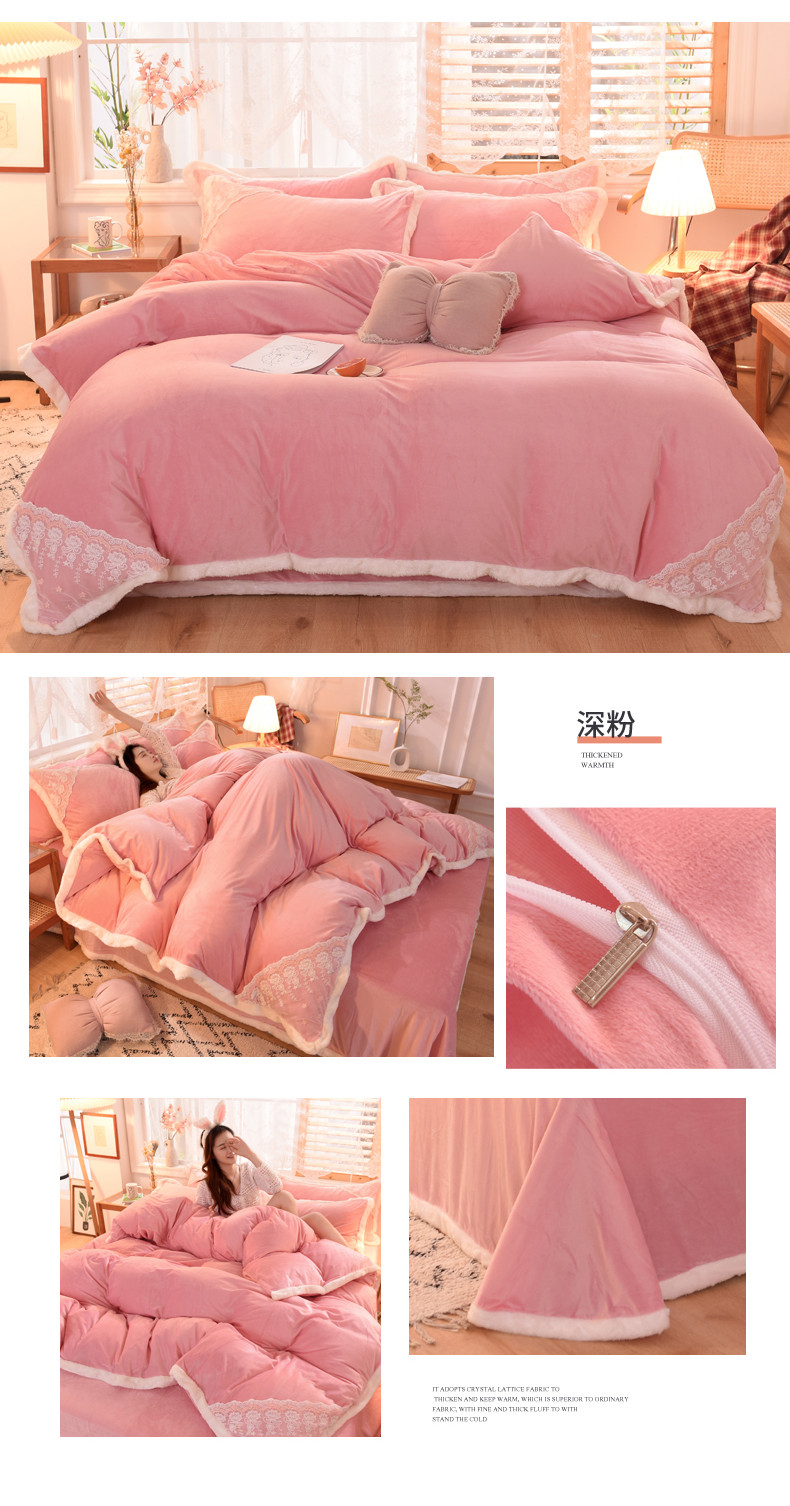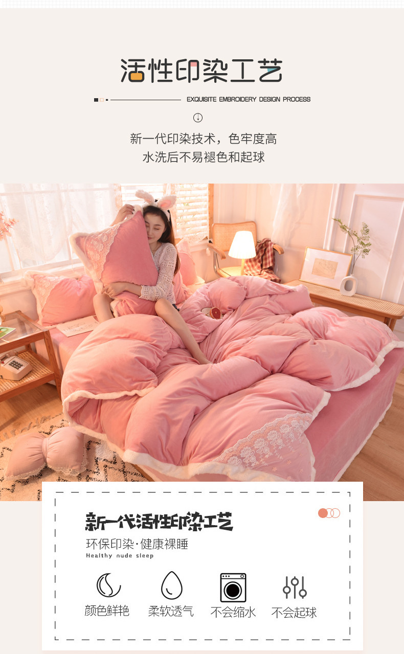 (总)丝印良品 2023新款韩版公主牛奶绒四件套
