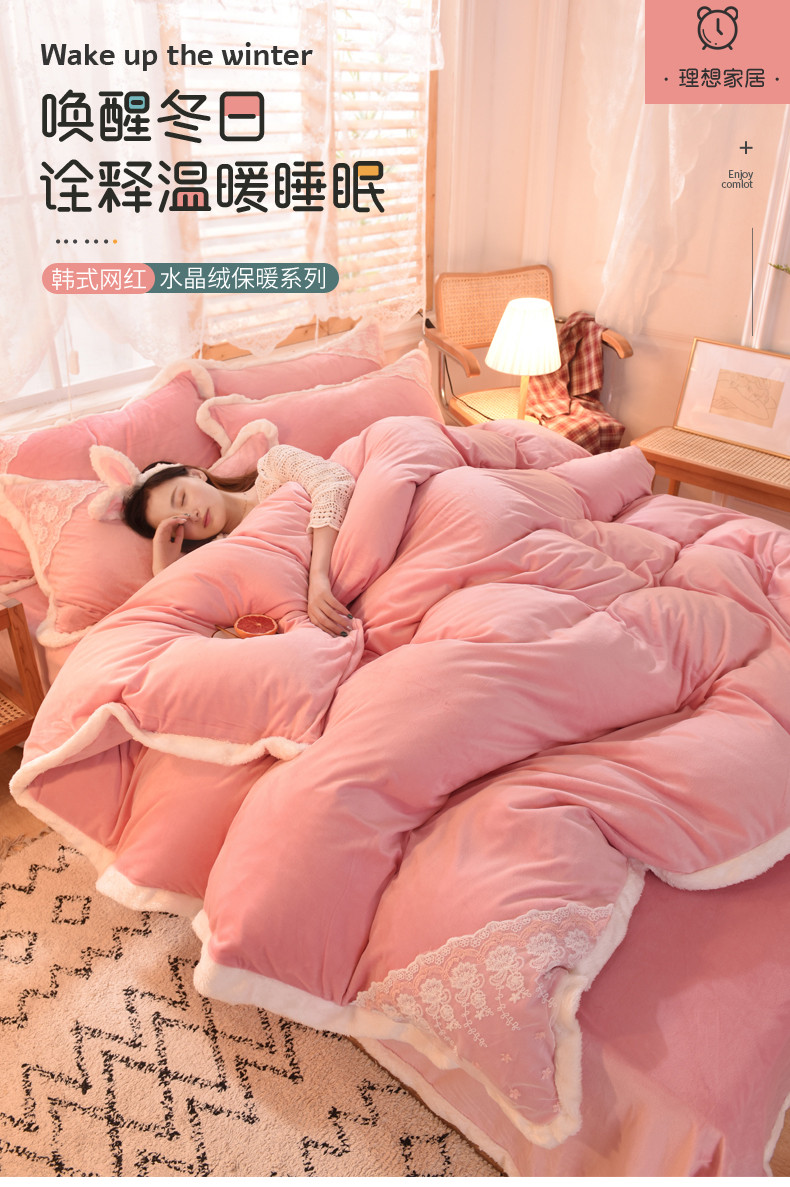 (总)欧冠 2023新款韩版公主牛奶绒四件套