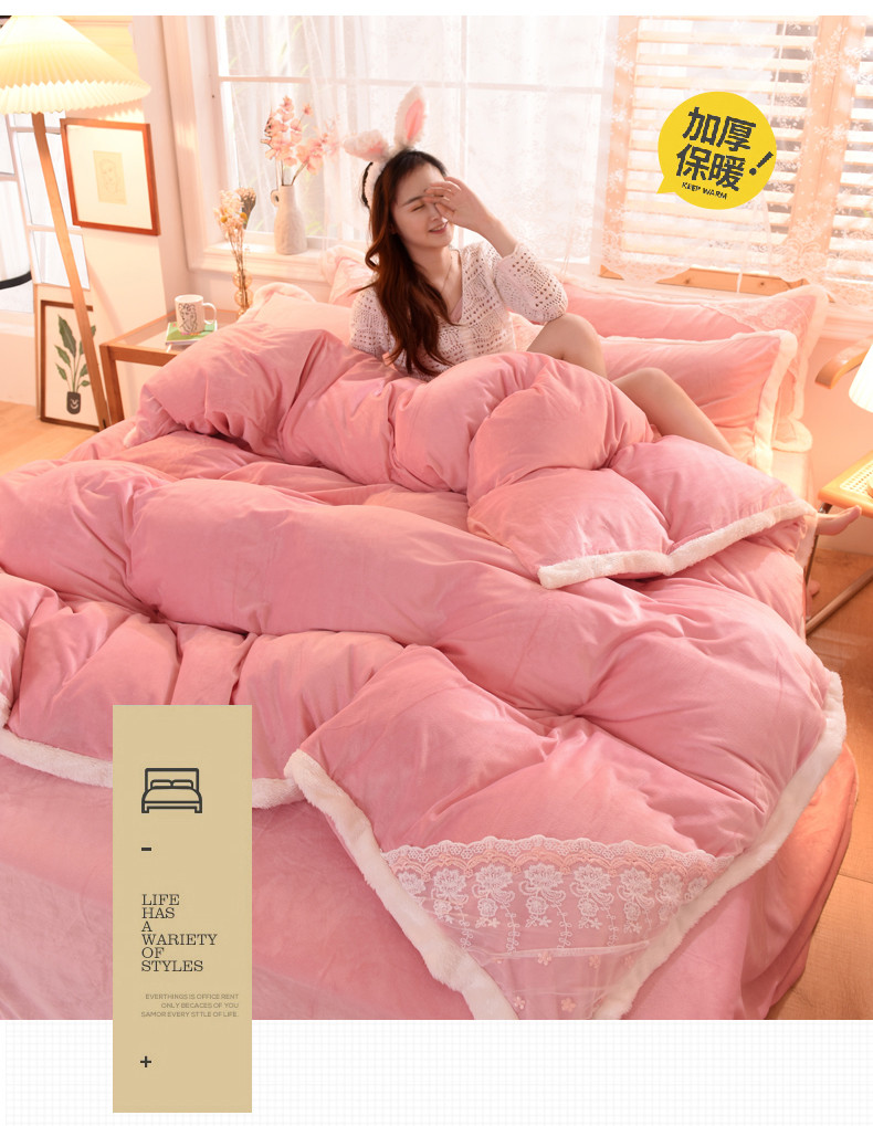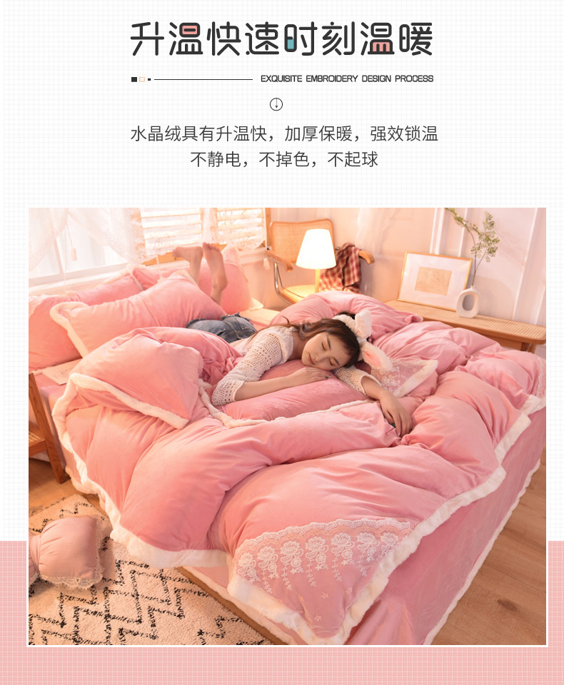 商品名称:(总)欧冠 2023新款韩版公主牛奶绒四件套