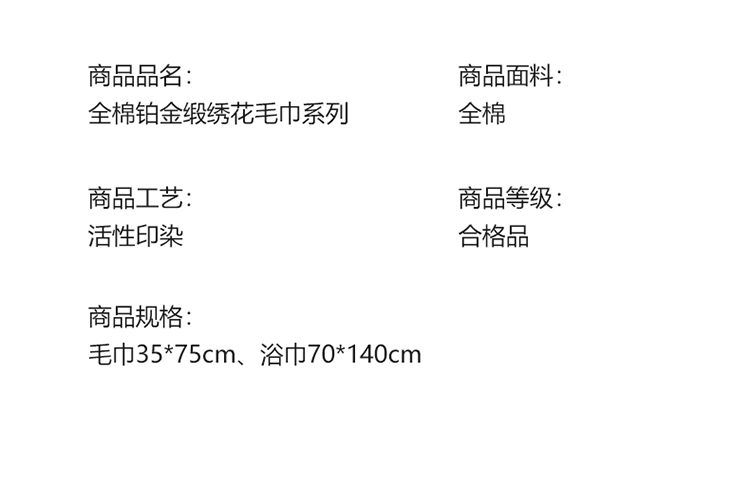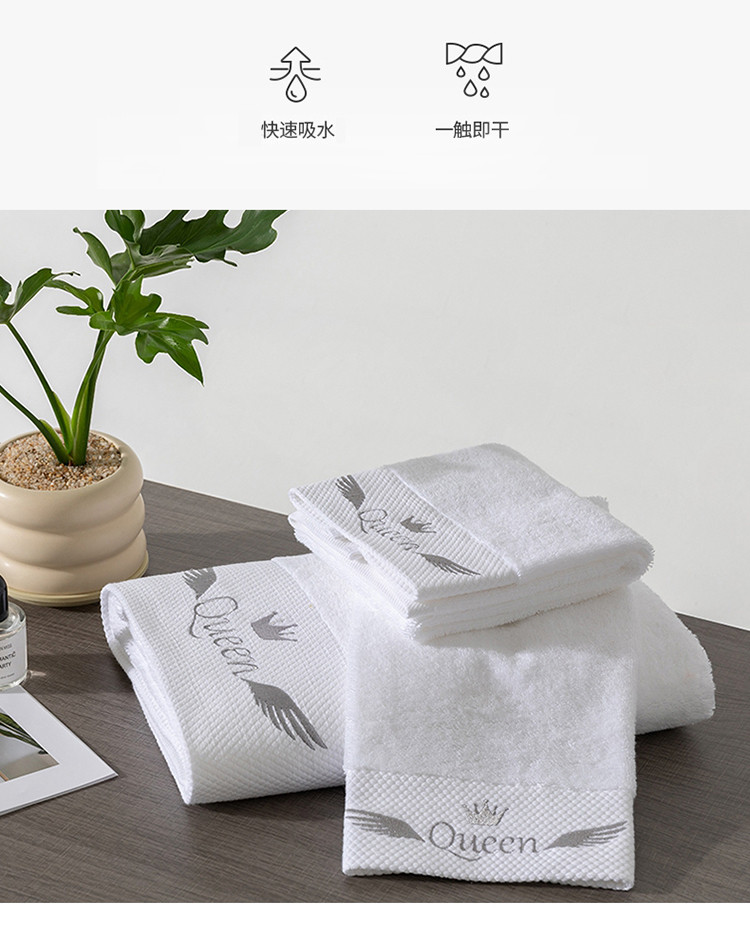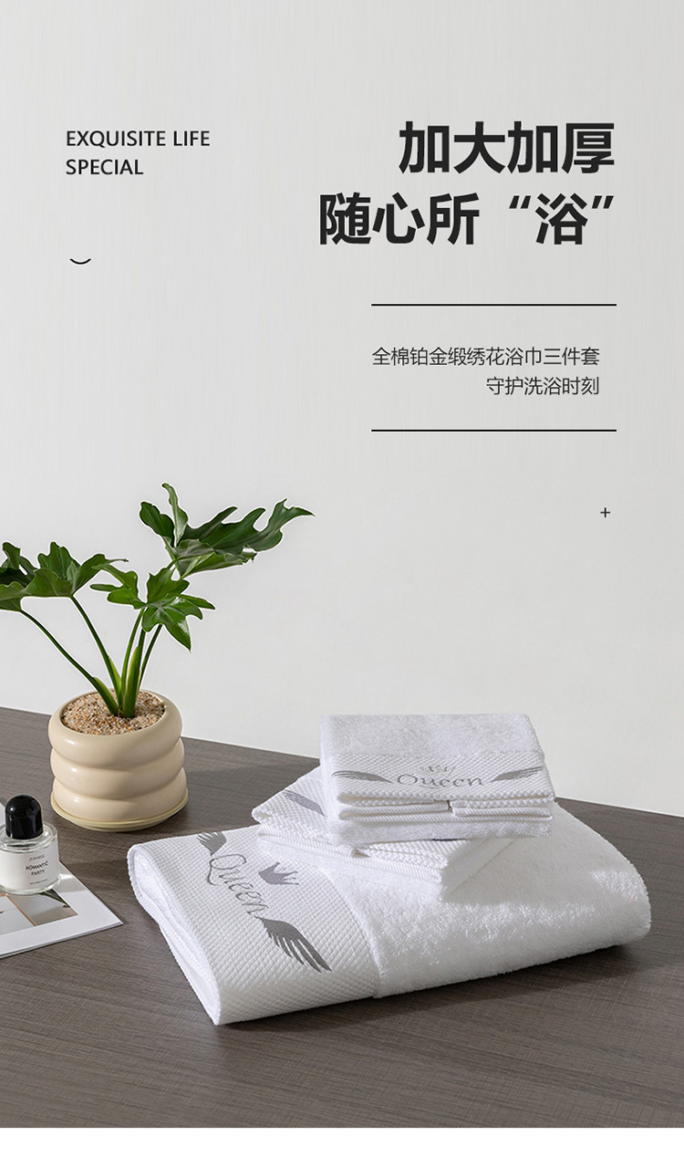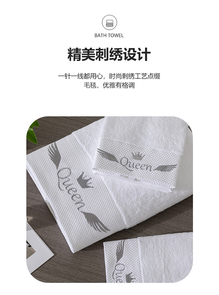 商品名称:全棉纯棉五星级酒店浴巾布草宾馆毛巾民宿铂金缎绣花面巾三件套queen