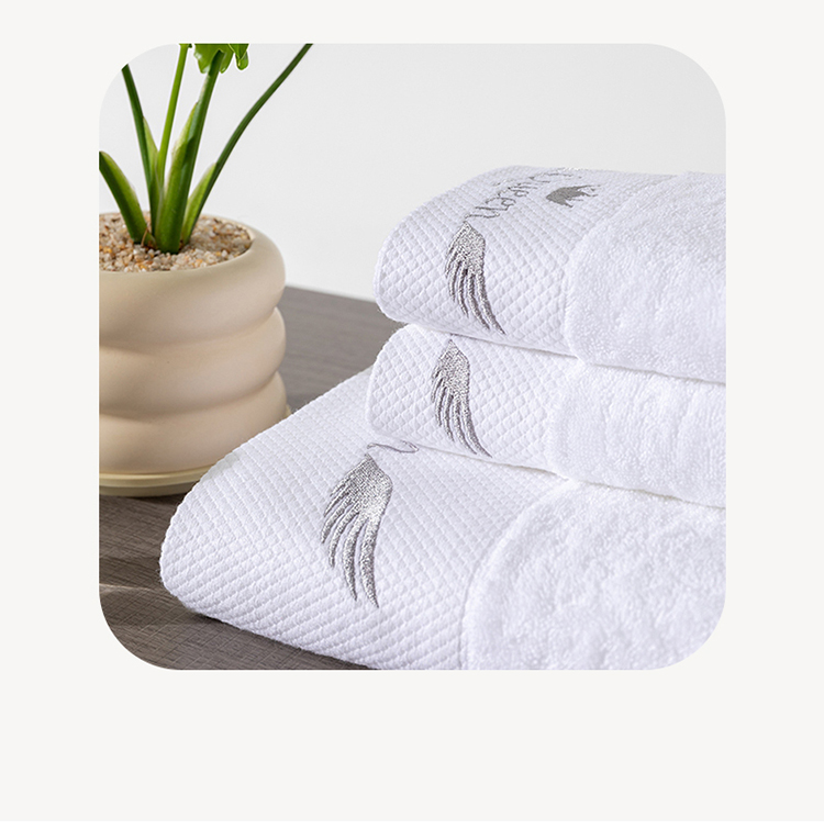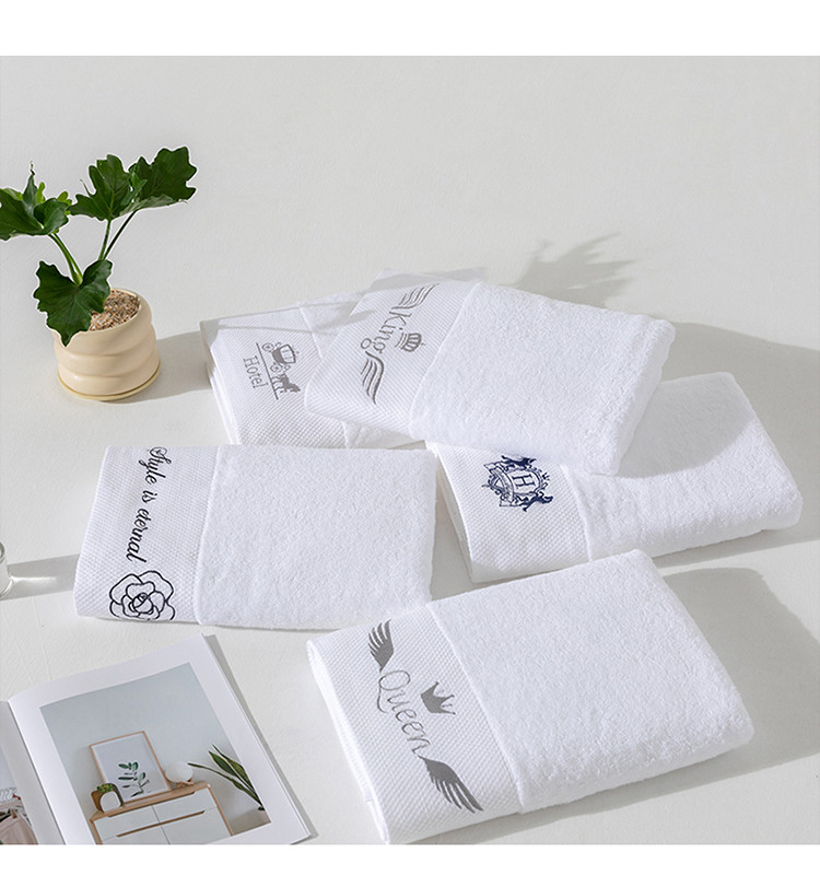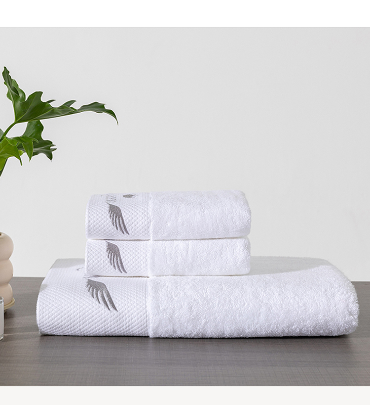 全棉纯棉五星级酒店浴巾布草宾馆毛巾民宿铂金缎绣花面巾三件套queen