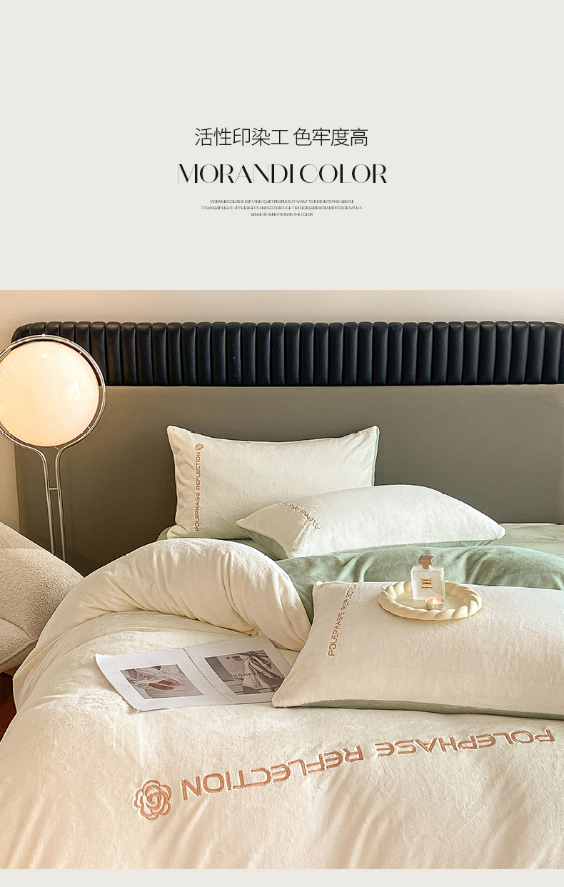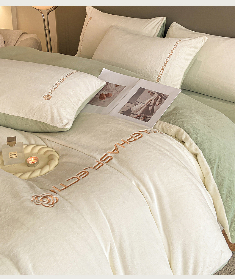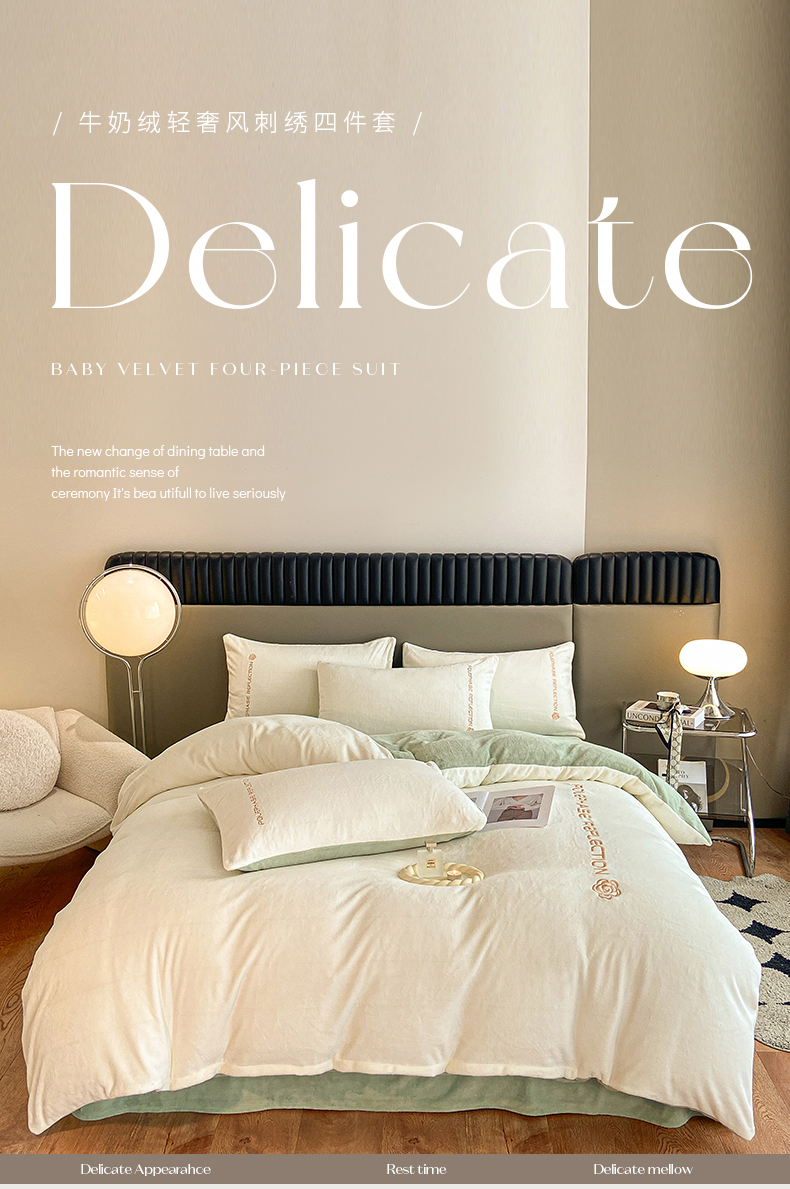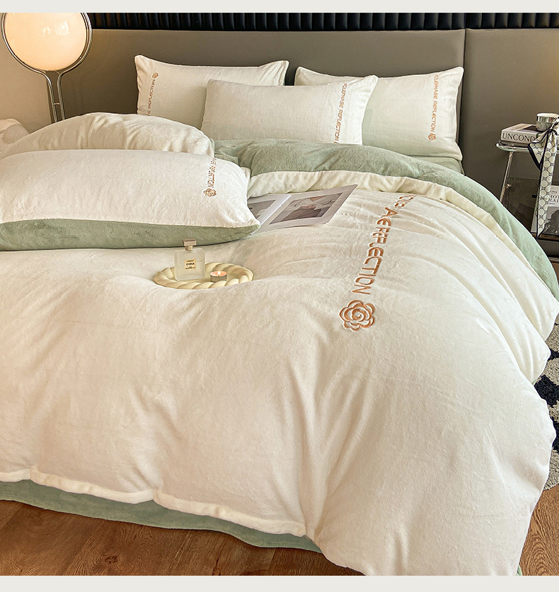 商品名称:澳梵 2023新款轻奢风牛奶绒刺绣四件套 云川绿