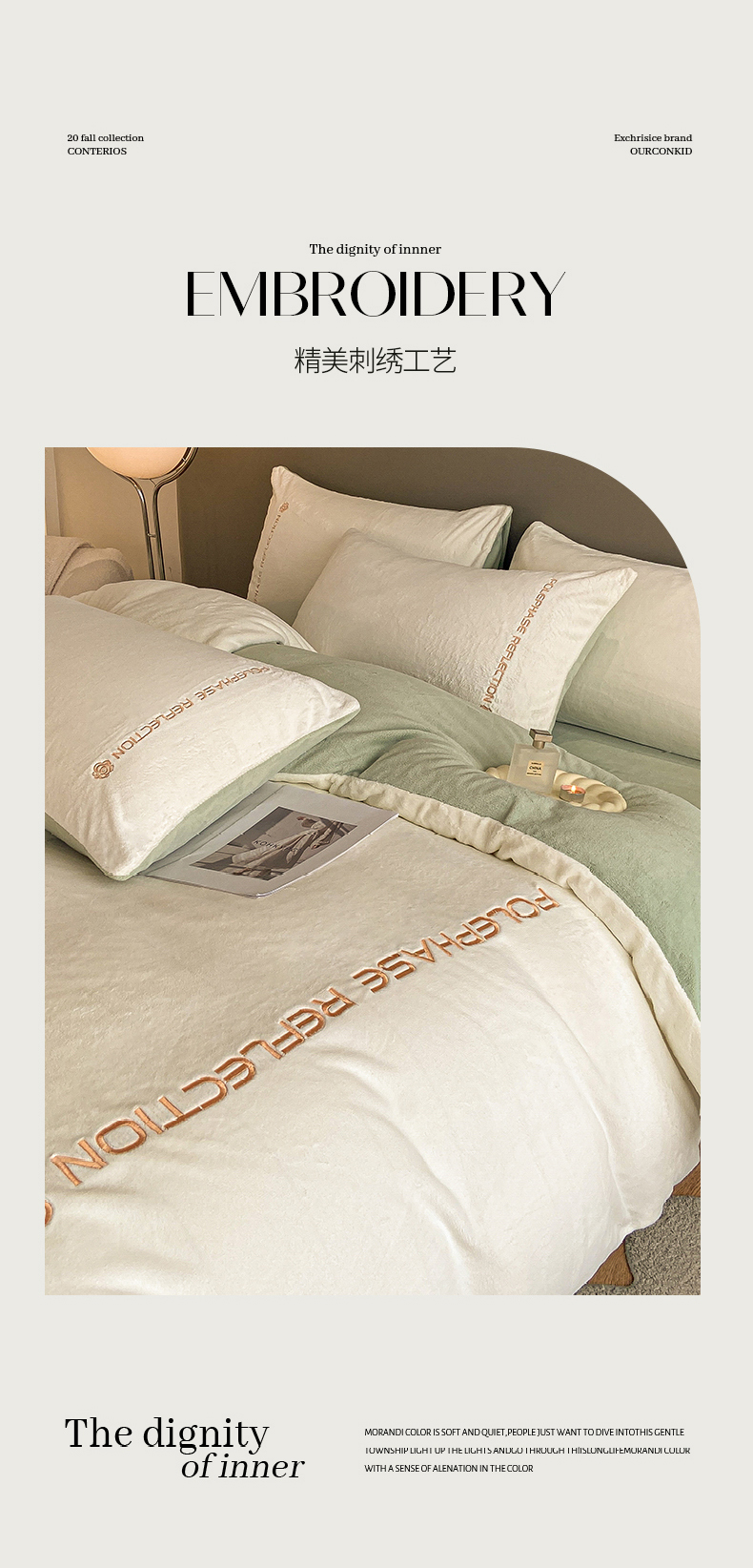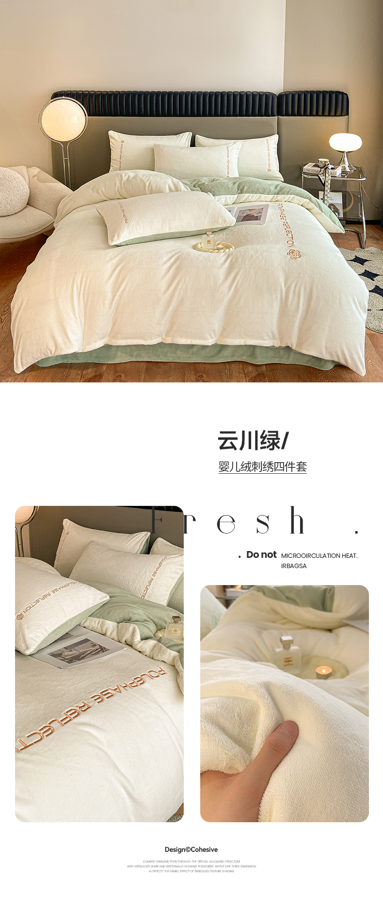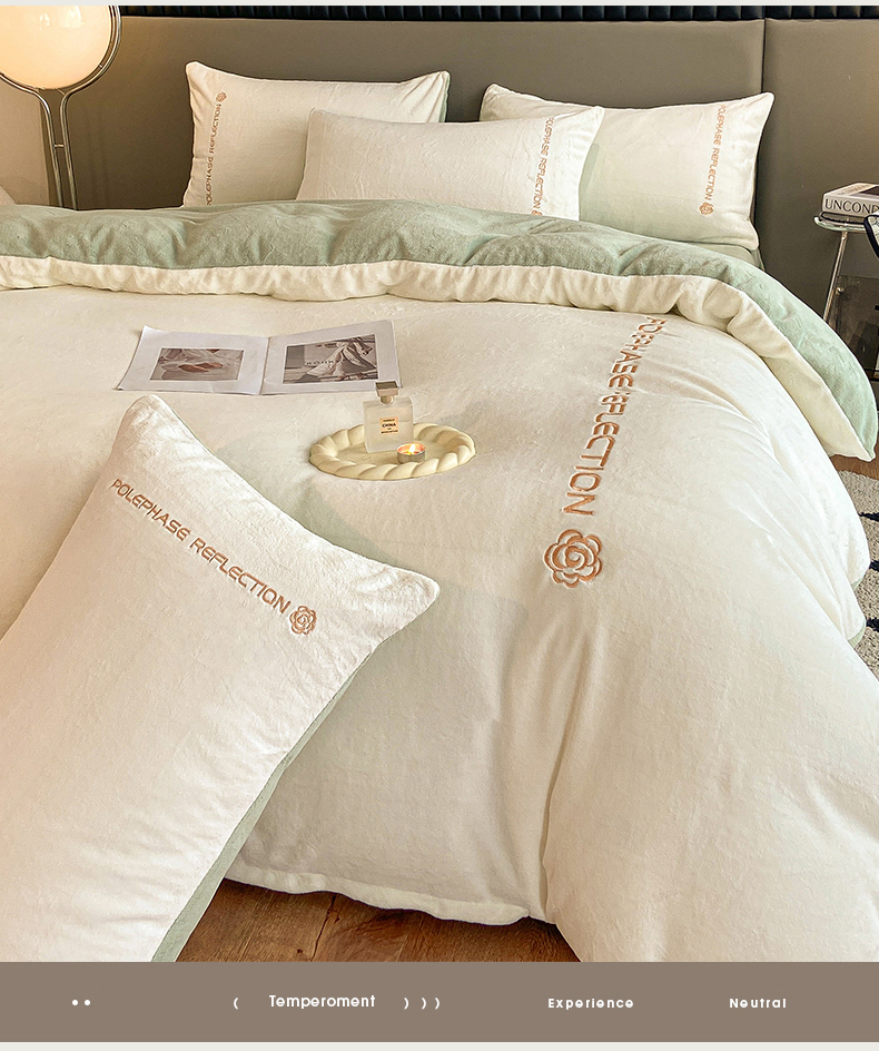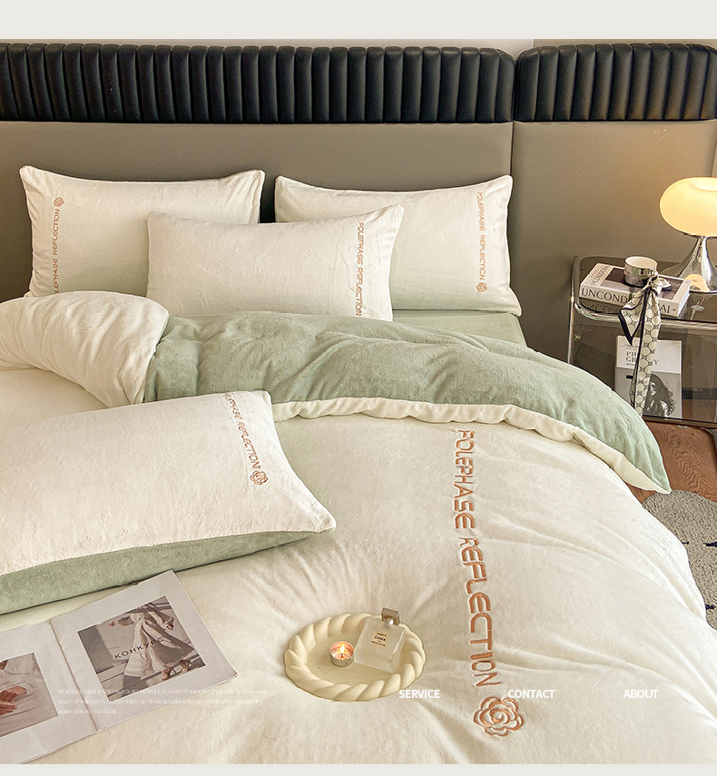 商品名称:澳梵 2023新款轻奢风牛奶绒刺绣四件套 云川绿