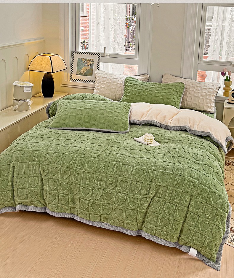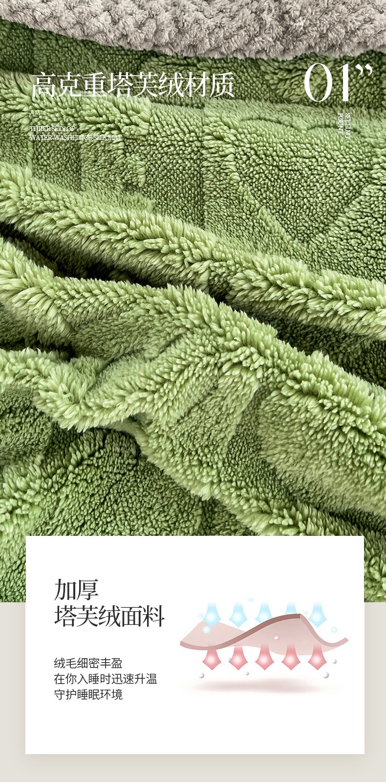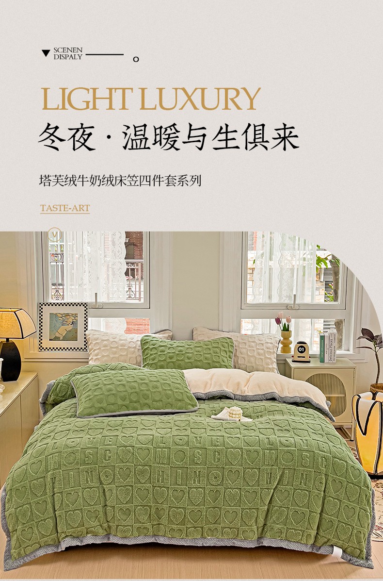 法澳 2023新款230克塔芙绒被套+牛奶绒夹棉床笠款四件套 牛油果绿