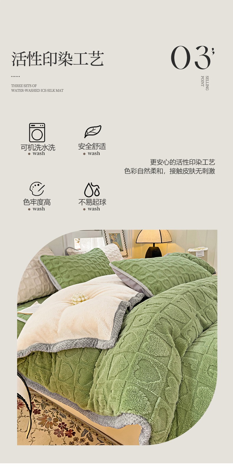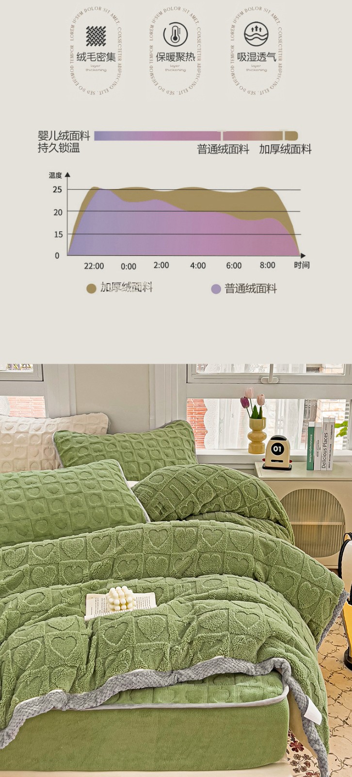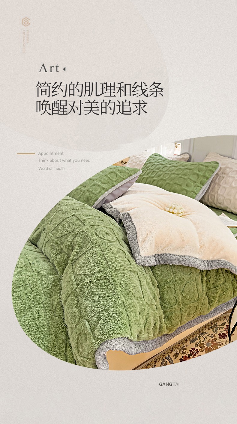 法澳 2023新款230克塔芙绒被套+牛奶绒夹棉床笠款四件套 牛油果绿