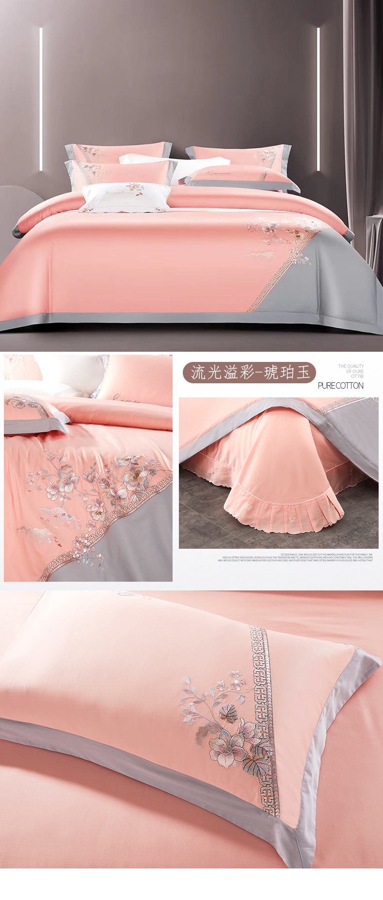 (总)诗黛尔 2025秋冬新款长绒棉刺绣香缇卡系列四件套,卡其色,落樱粉,南瓜橘,绅士灰,水晶兰,油果绿