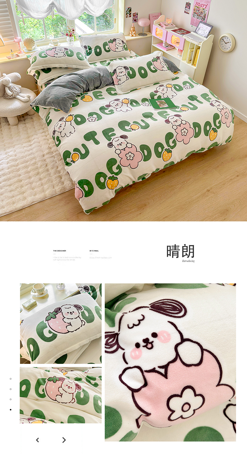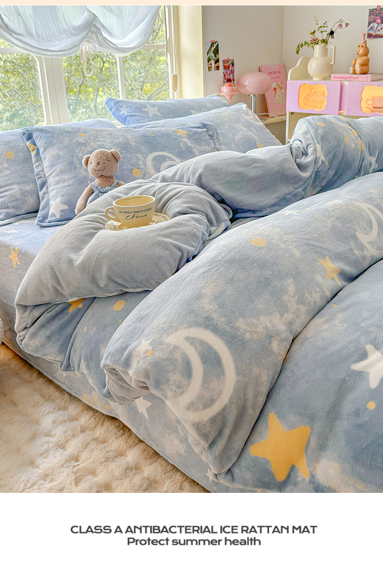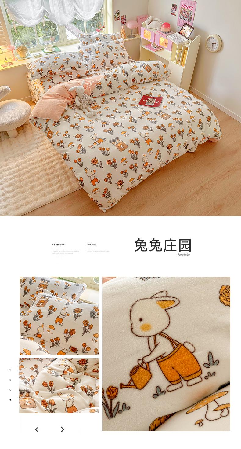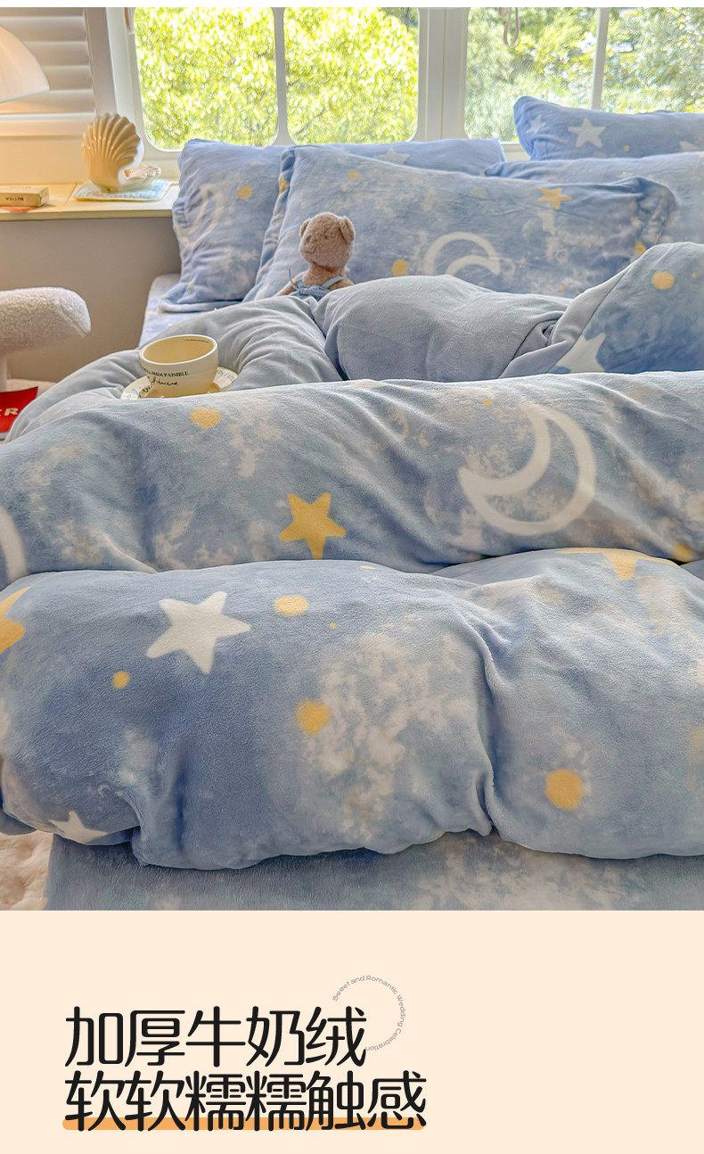 总名兮 2023名兮直播电商爆款印花牛奶绒四件套高克重绒四件套被套床单