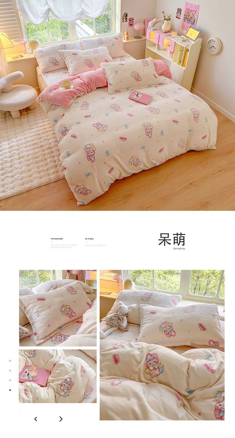 (总)名兮 2023新款全棉印花卡通风四件套,抱抱熊,波波熊,菲菲兔,机器小新,可爱萌宠,可爱兔