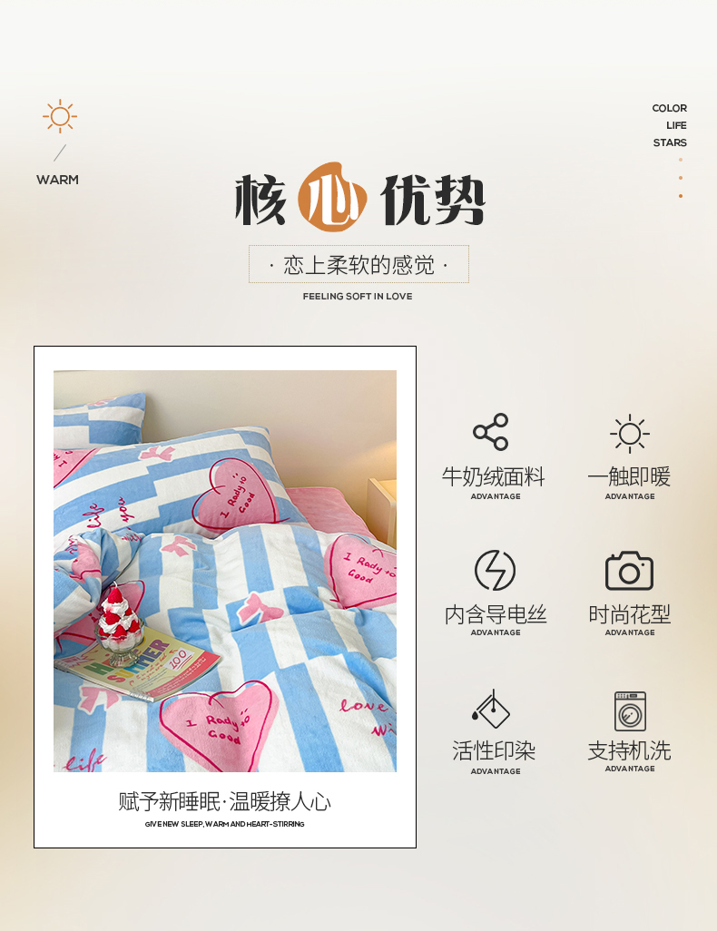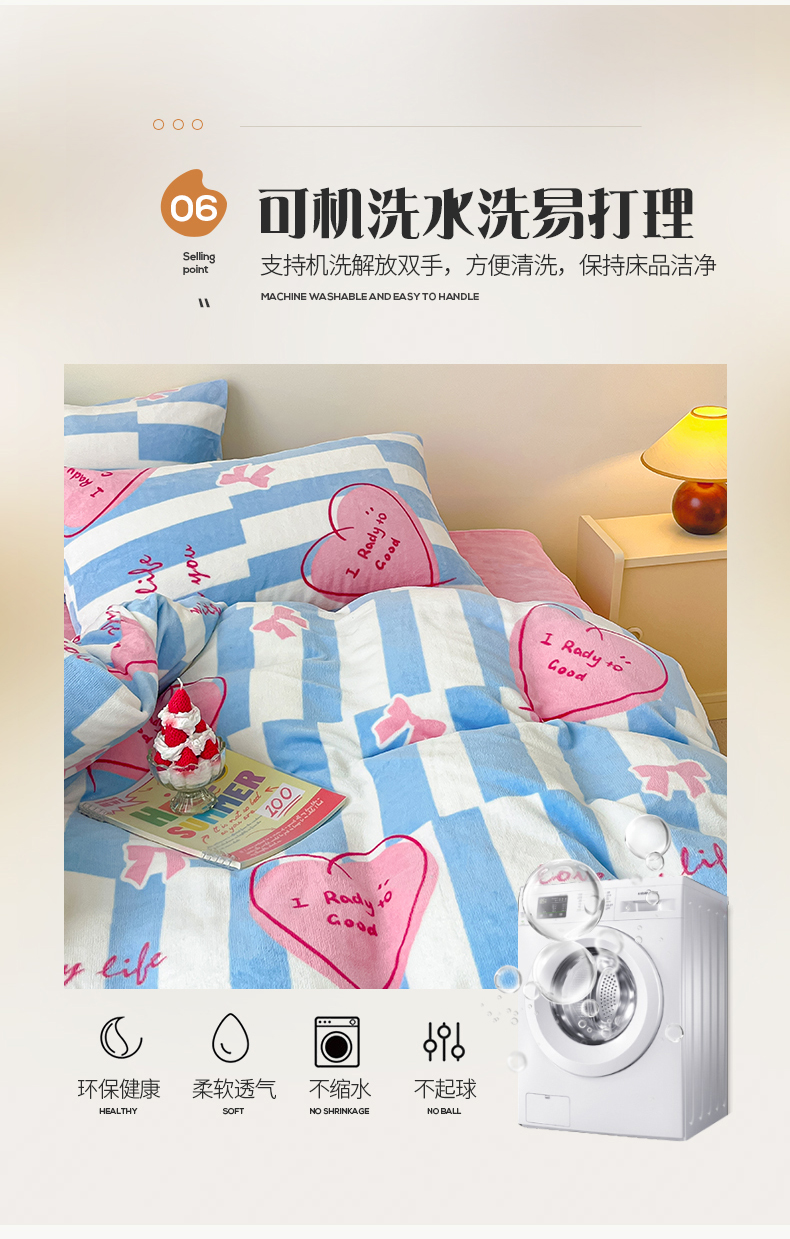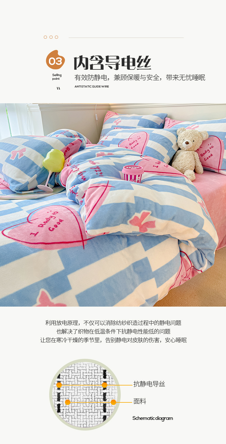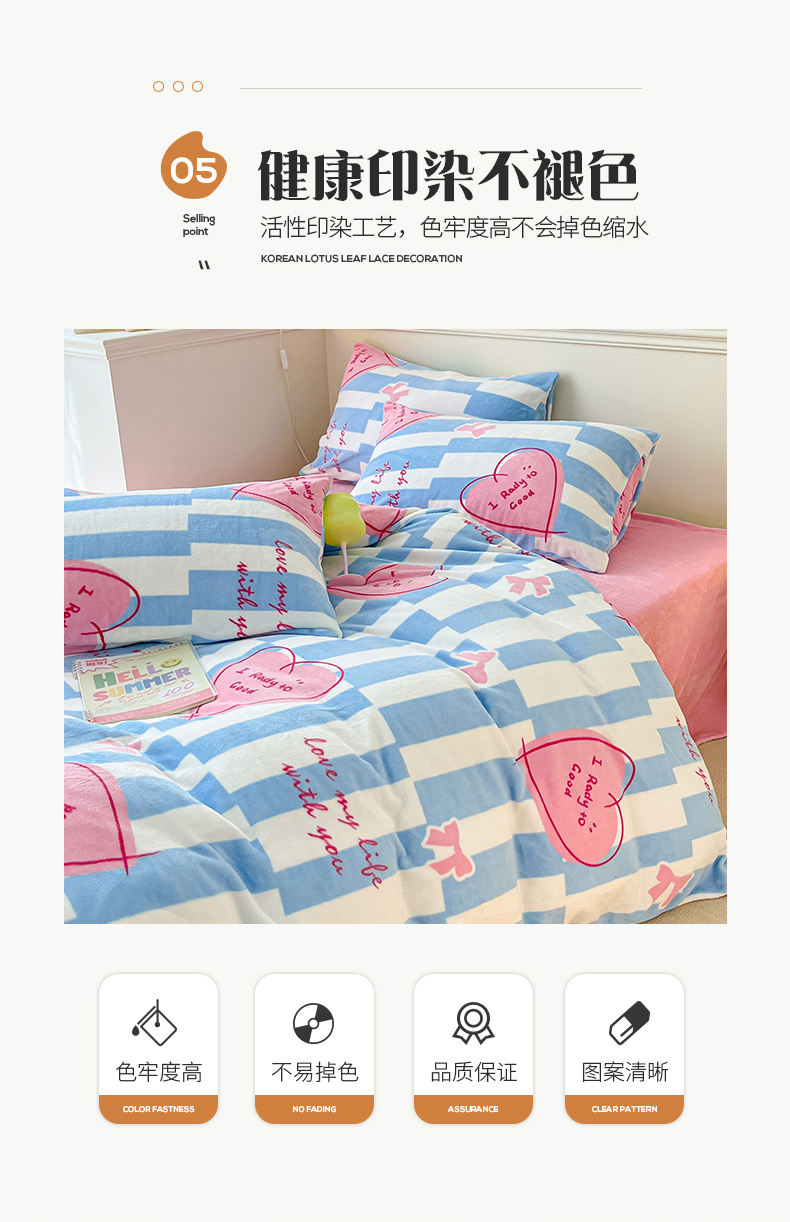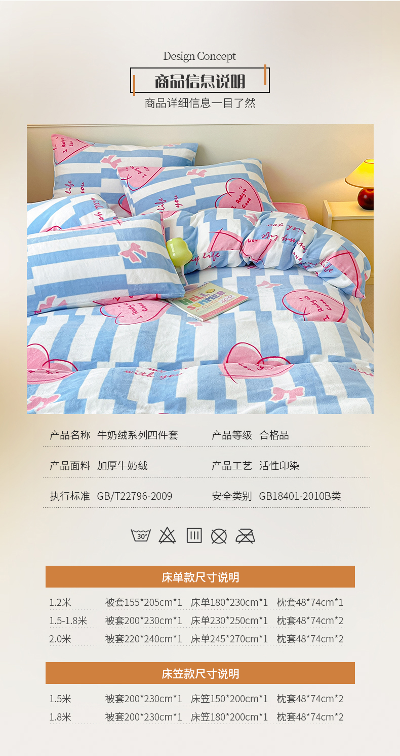 商品名称:桃子家居 2023新款ins韩系简约卡通奶油小清新加厚牛奶绒系列四件套 绒-蓝色妙恋