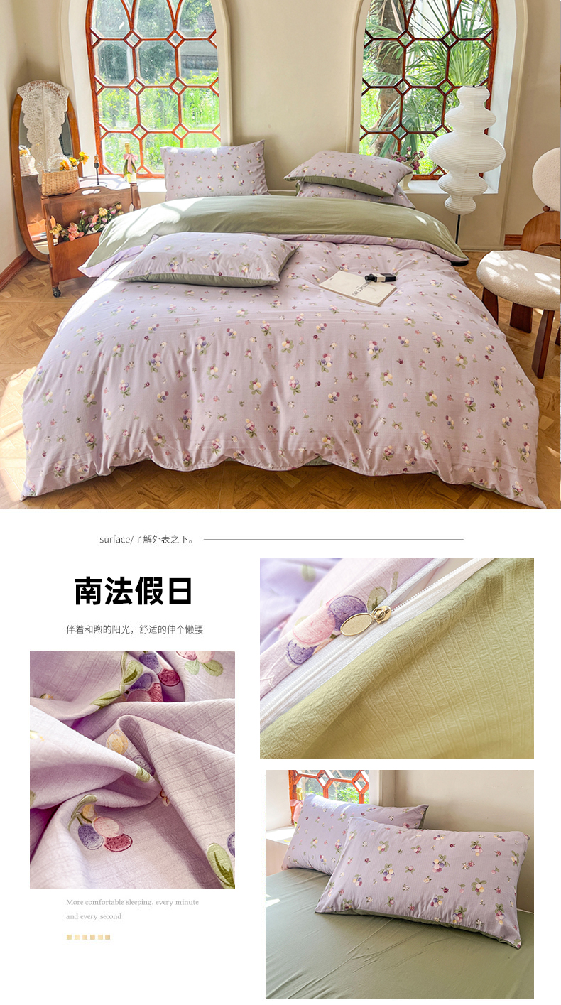 (总)上尚居 2025新款简约时尚木棉云感皱皱纱四件套,邦尼,朝花夕拾,点点莓果,浮生如梦,花季如梦,浅若花落,倾心,森田园野,小确幸,紫萱