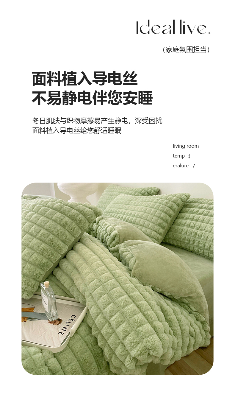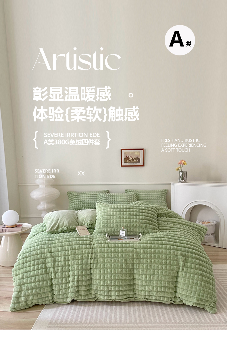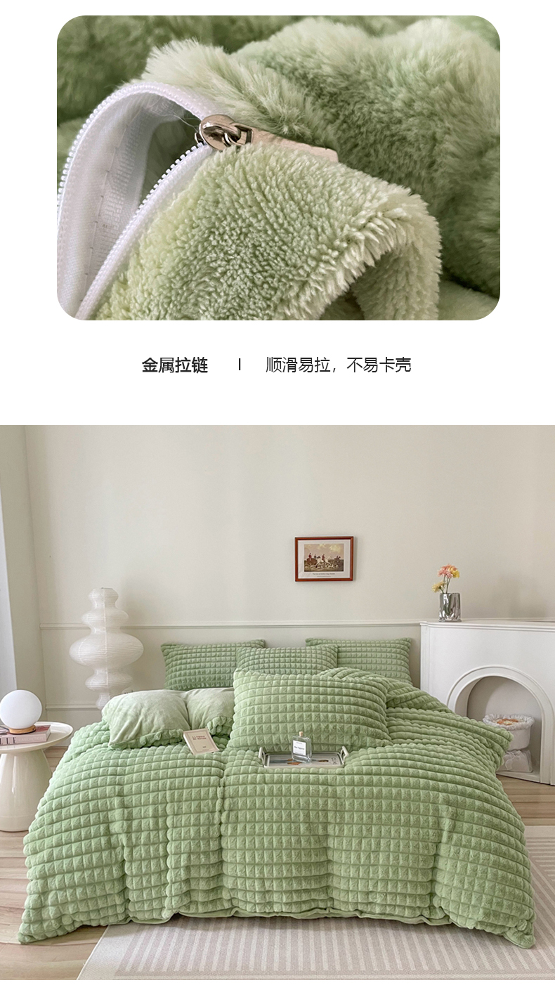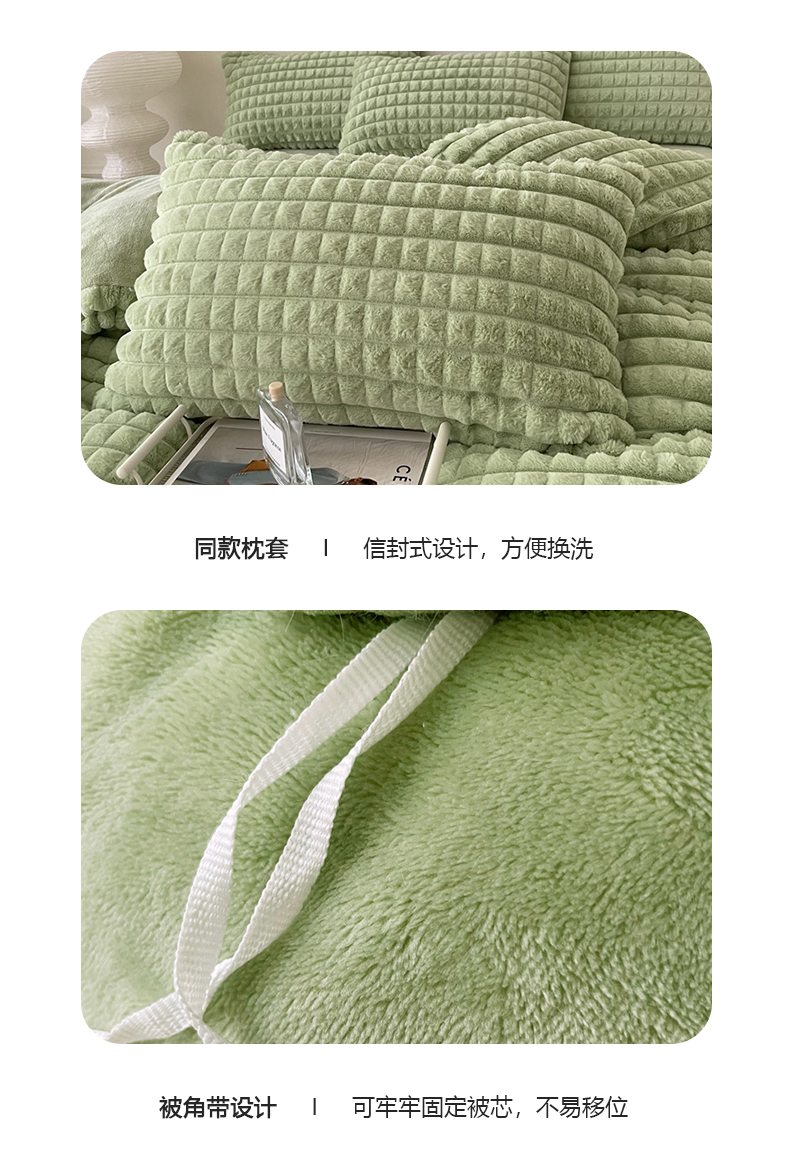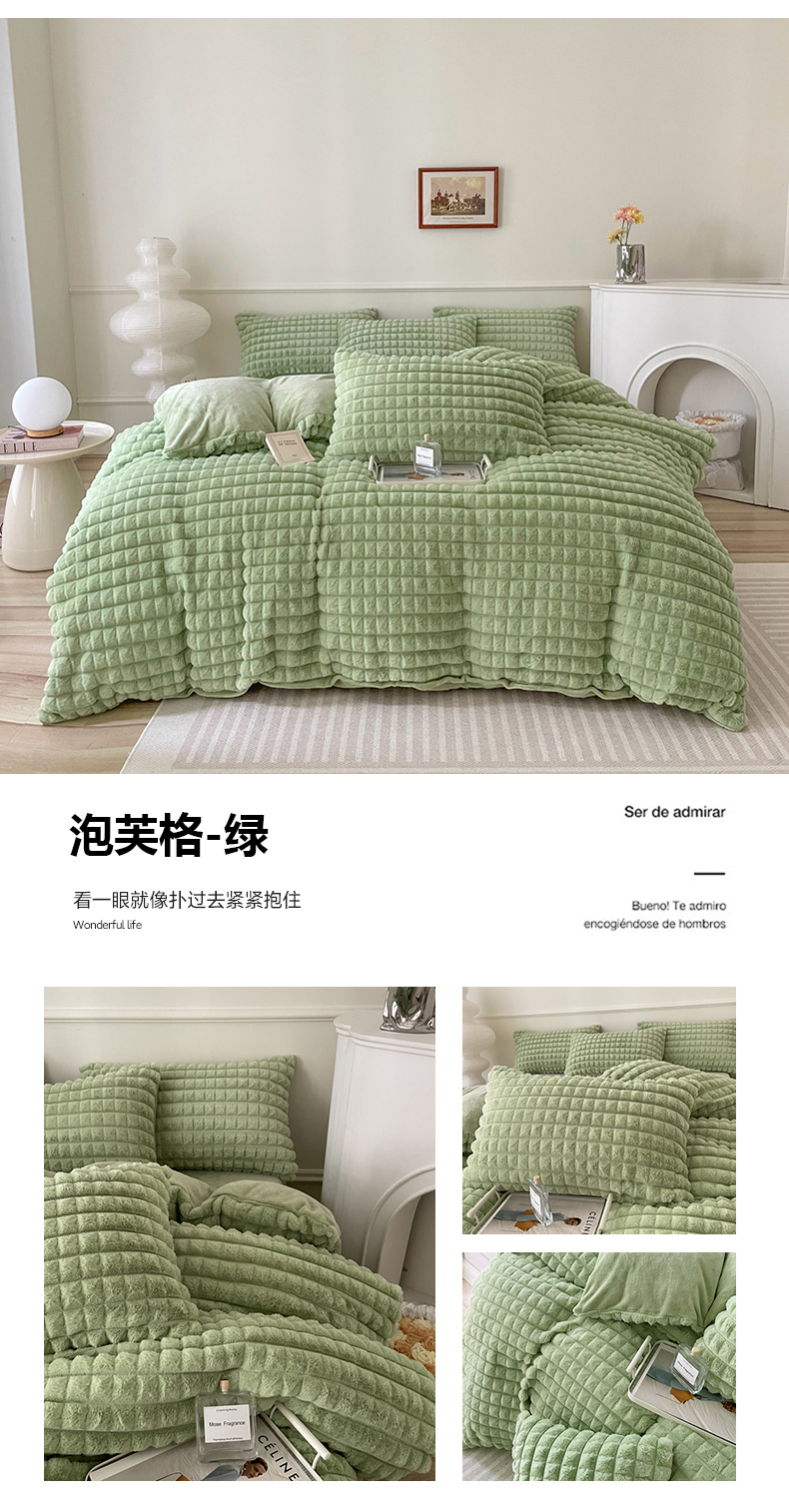 商品名称:喜梦缘 2025新款A类兔毛绒四件套 泡芙格-绿