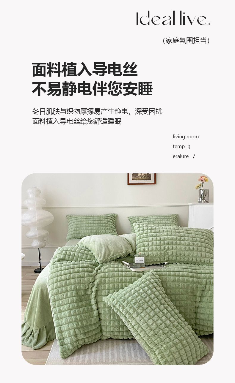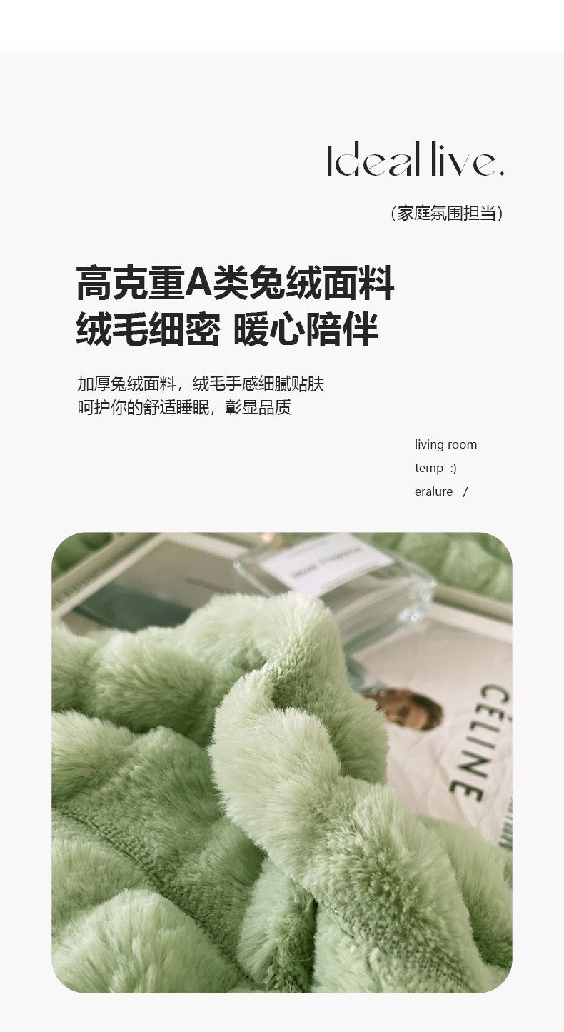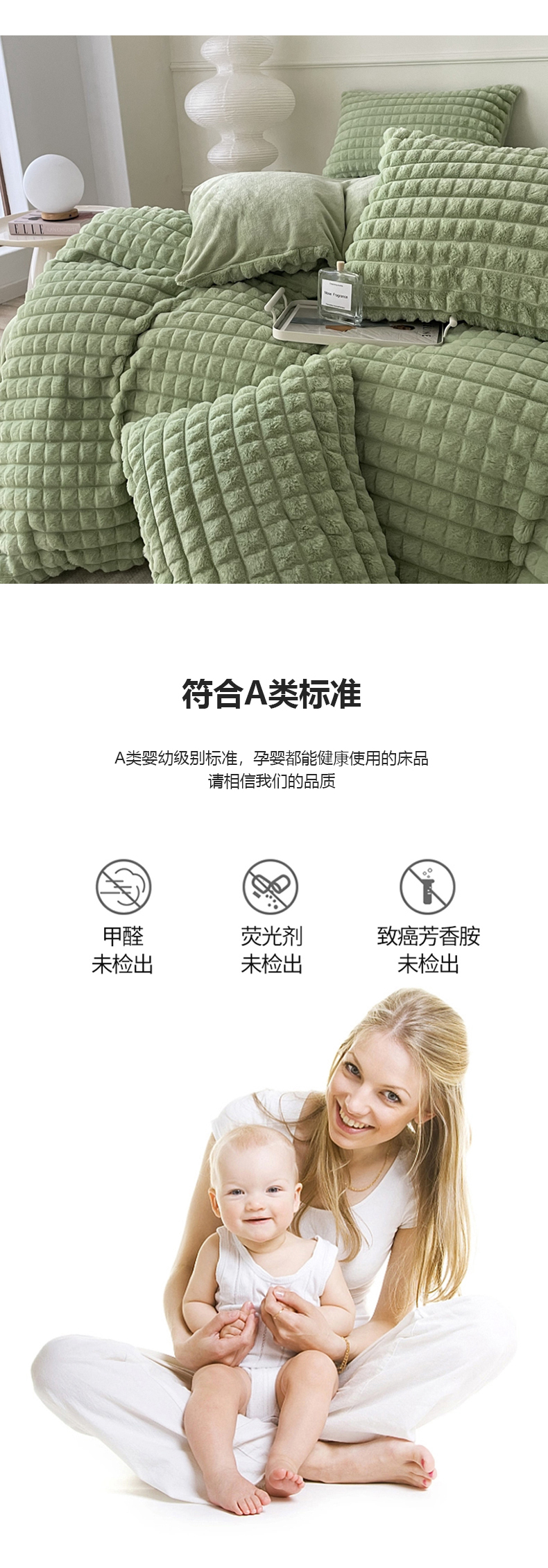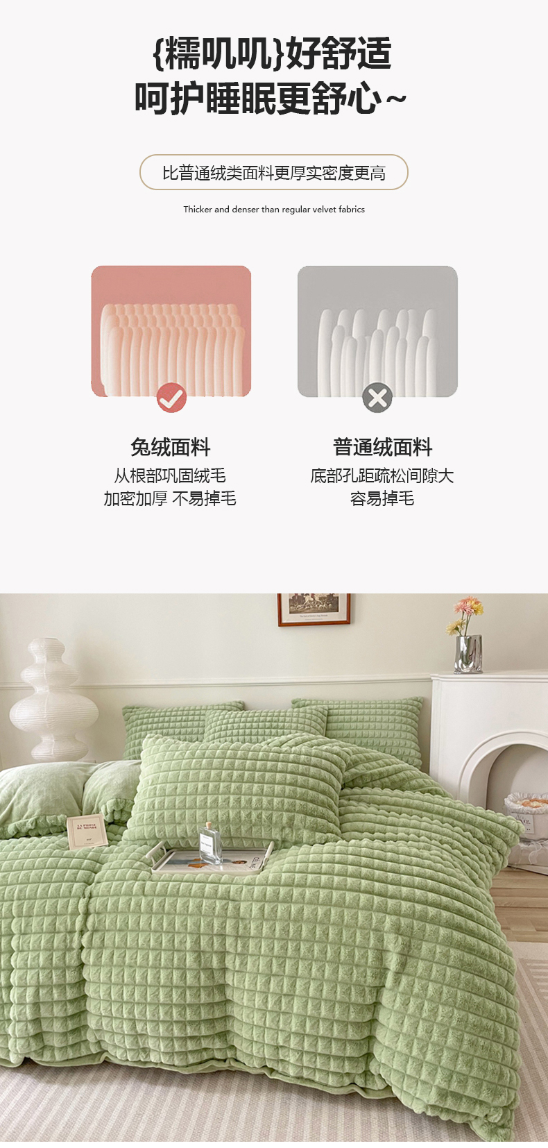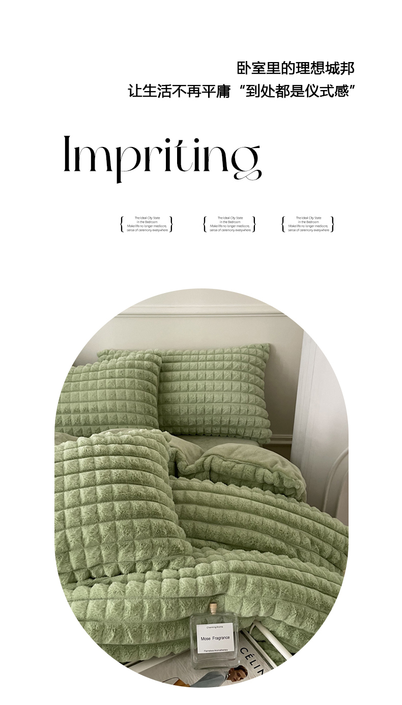 商品名称:喜梦缘 2025新款A类兔毛绒四件套 泡芙格-绿