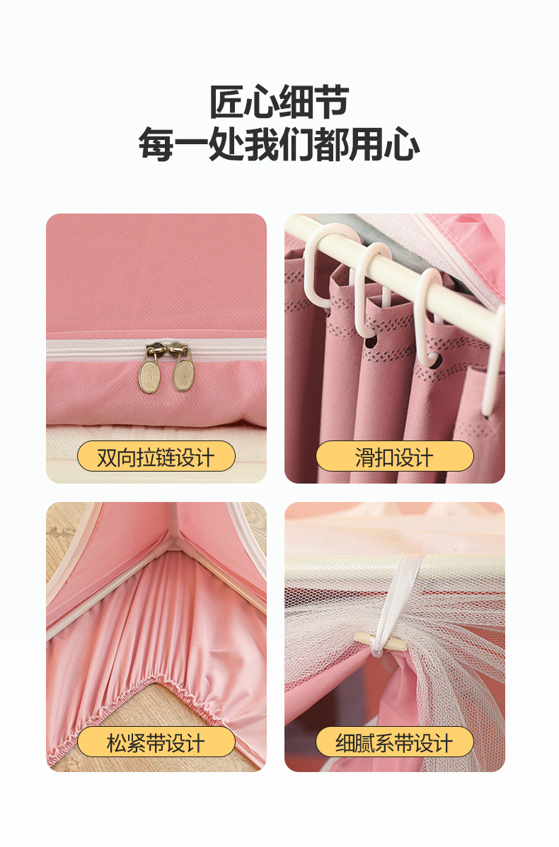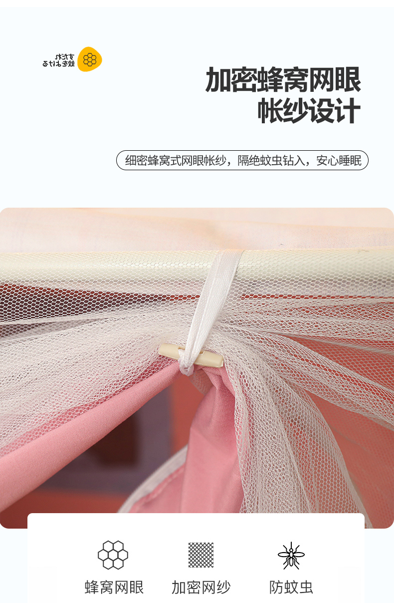 商品名称:安金蚊帐 2024新款加高加大99%强遮光学生蚊帐纯色花边蚊帐 少女粉
