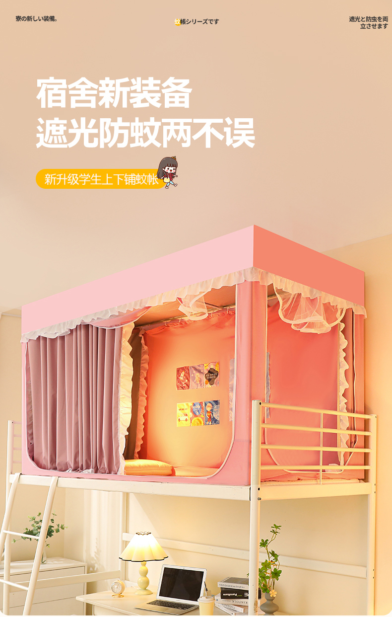 (总)安金蚊帐2025新款防蚊遮光一体99%强遮光学生宿舍上下铺遮光学生蚊帐-粉色系列,公主狗,聚会猫,美梦猫,出行莉莉,萌萌熊,害羞布布,爱心布布,快乐莉莉,美美熊,贝儿城堡