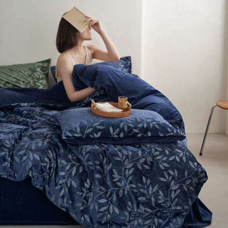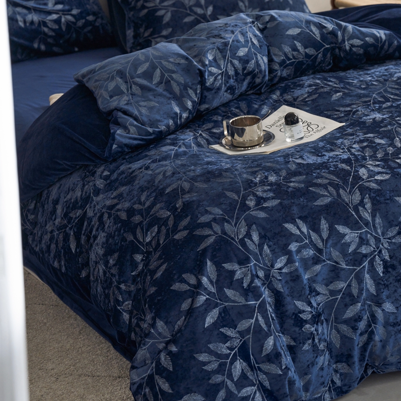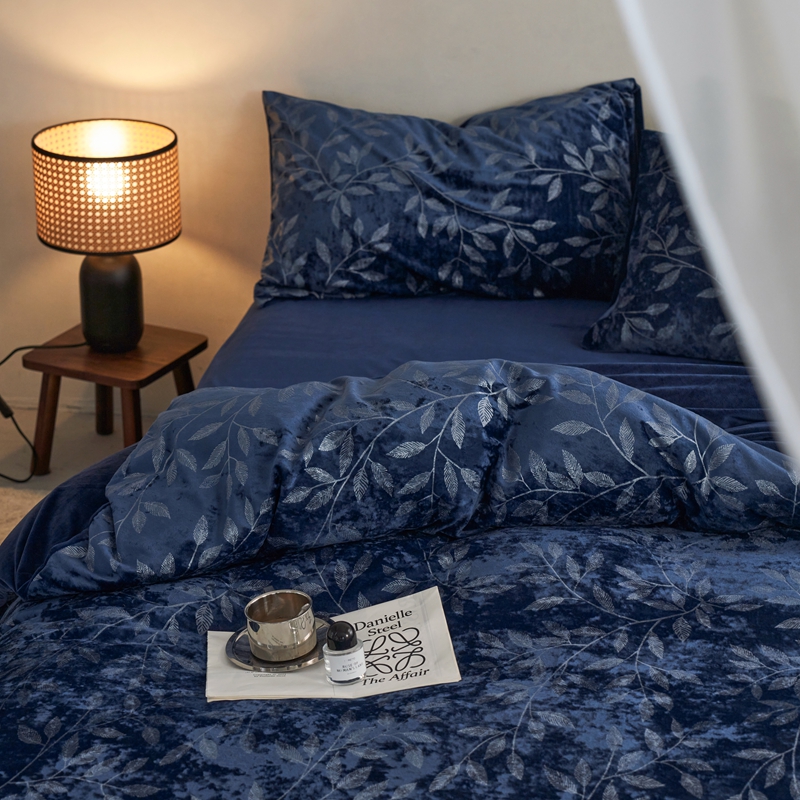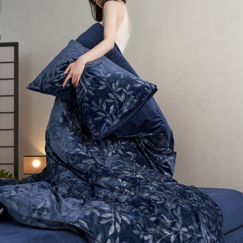 当前位置: 91家纺网 > 商品网购 > 床品套件 > 四件套 > 天鹅绒四件套 > 安莱生活 2023年秋冬专版独创希腊绒天鹅绒烫银冰花四件套-布鲁塞尔 布鲁塞尔-深蓝