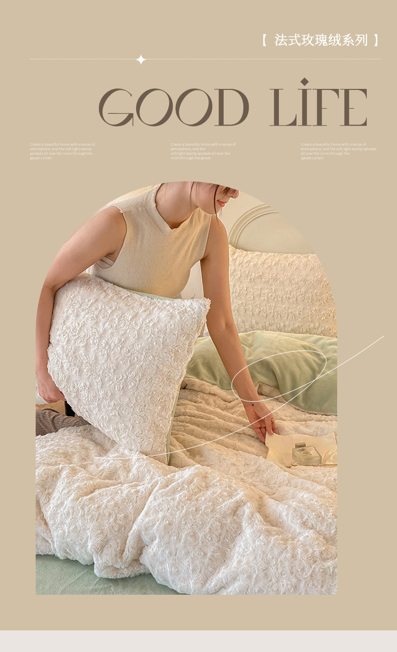 当前位置: 91家纺网 > 商品网购 > 床品套件 > 四件套 > 兔毛绒四件套 > (总)蓝米卡夫 2024秋冬A类獭兔毛400克加厚法式玫瑰绒