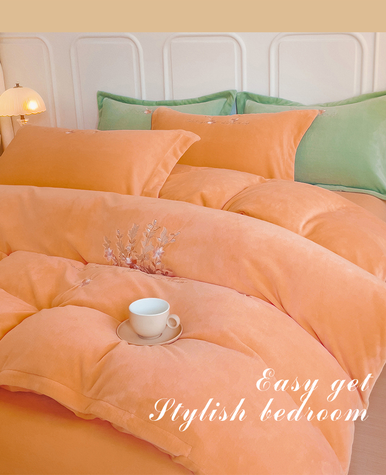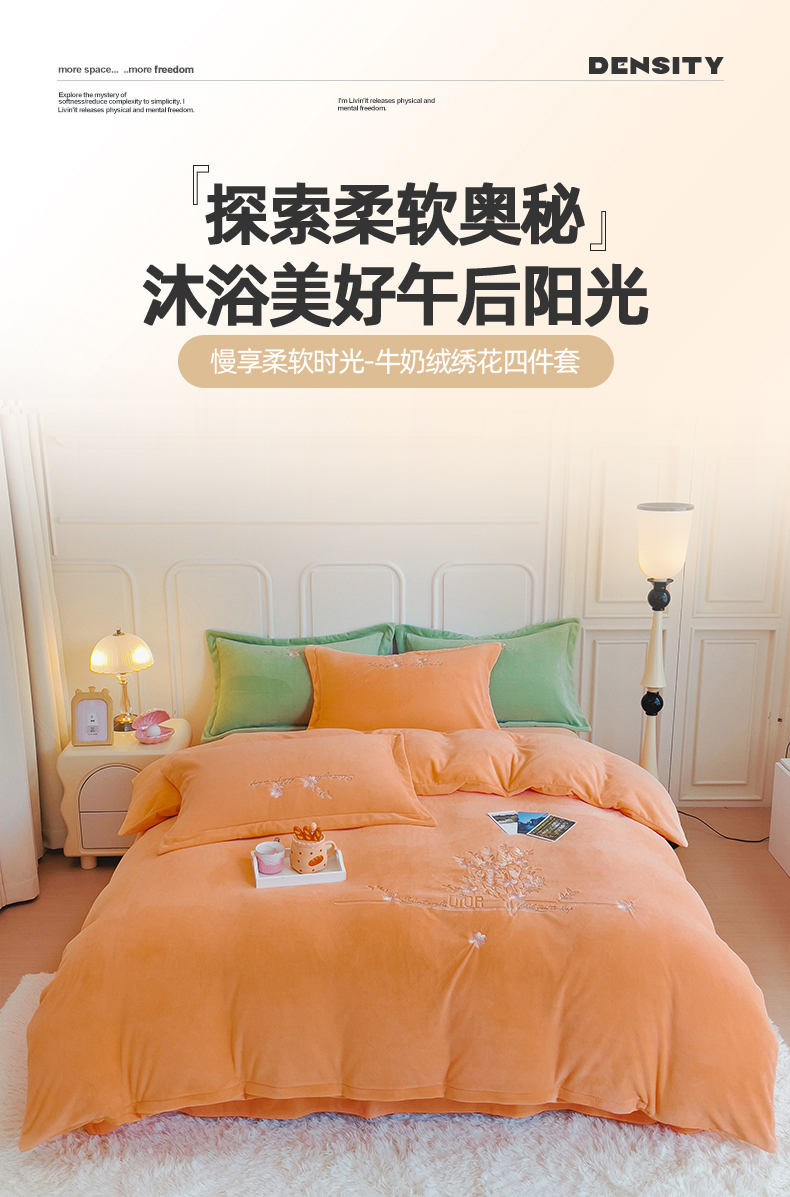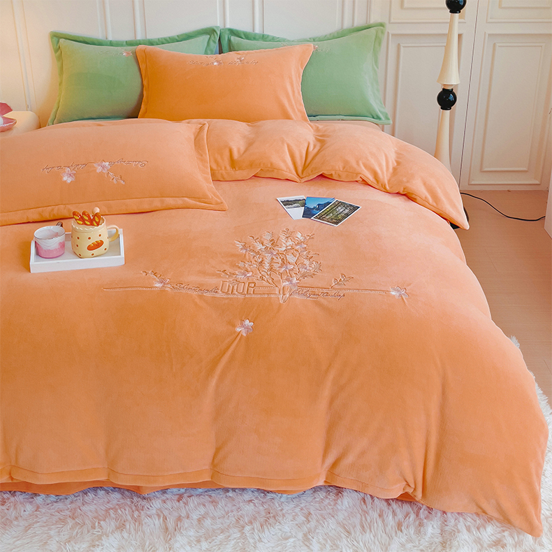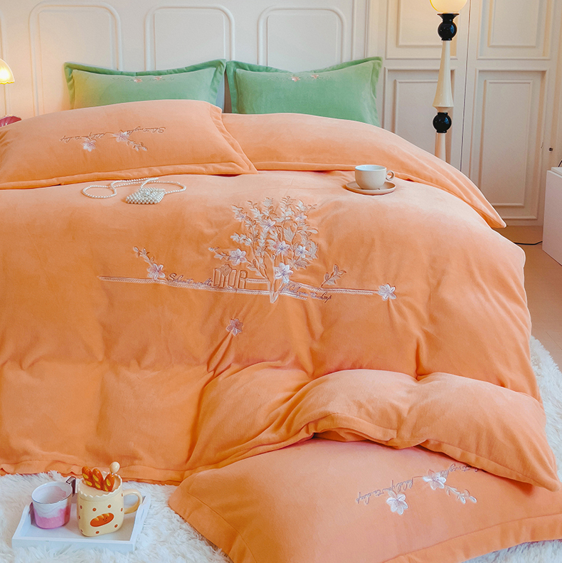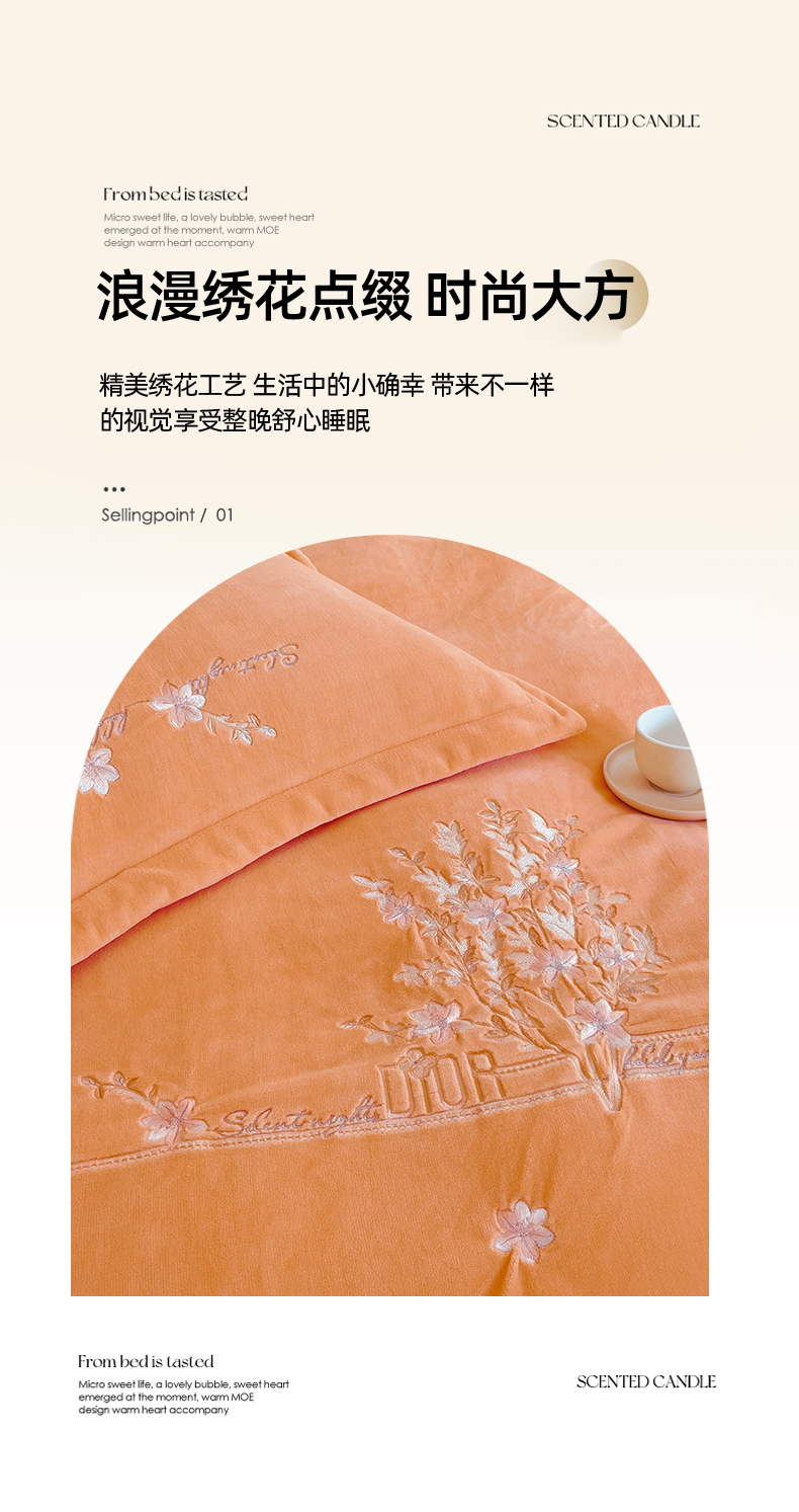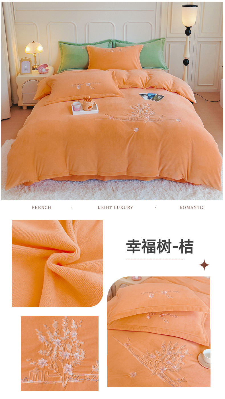 (总)云锦2023秋冬新品全棉磨毛绣花四件套缦芯,缦芯粉,缦芯灰,缦芯橘,缦芯蓝,缦芯紫