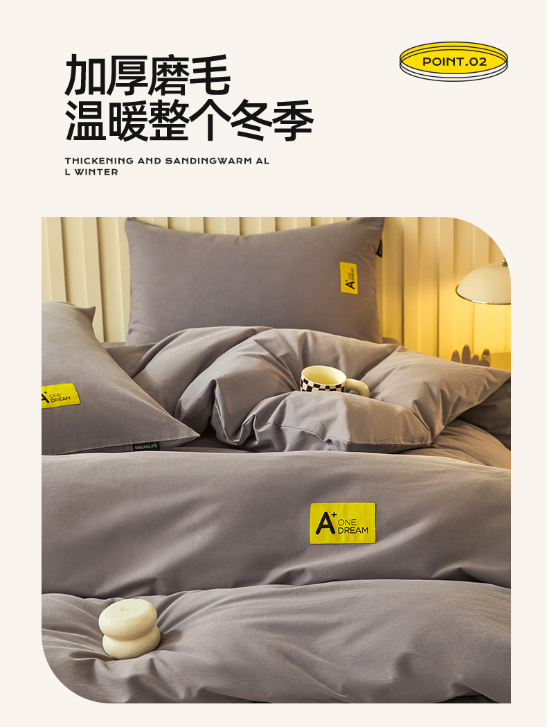 商品名称:蓝米卡夫 2024秋冬全棉加厚磨毛A+四件套系列 A+爵士灰