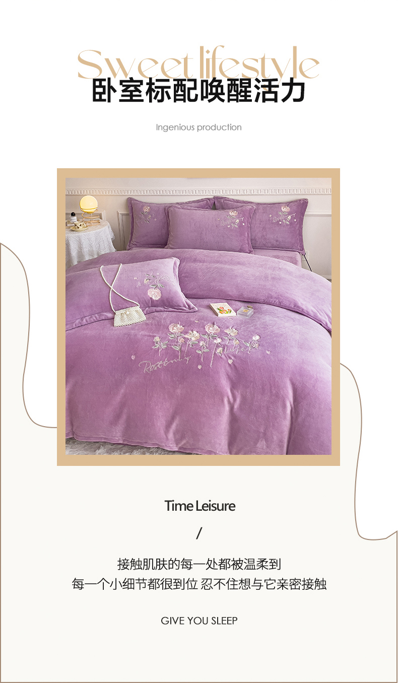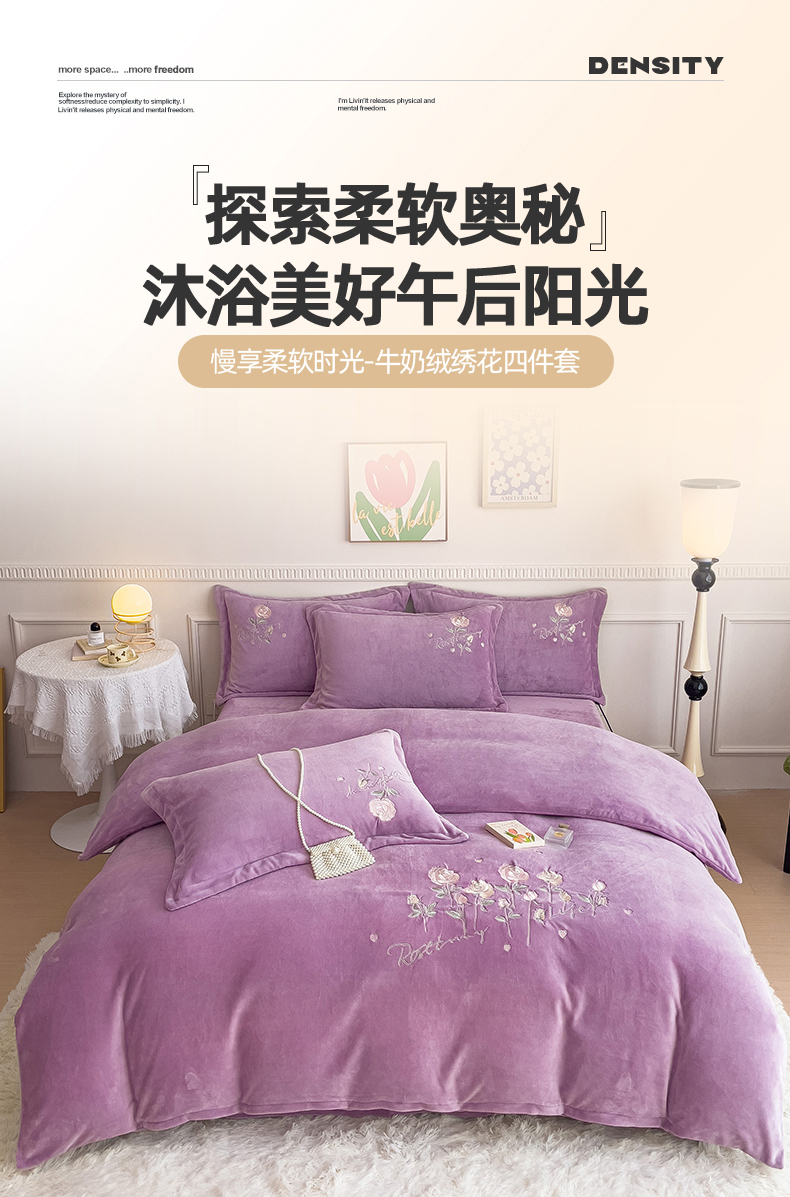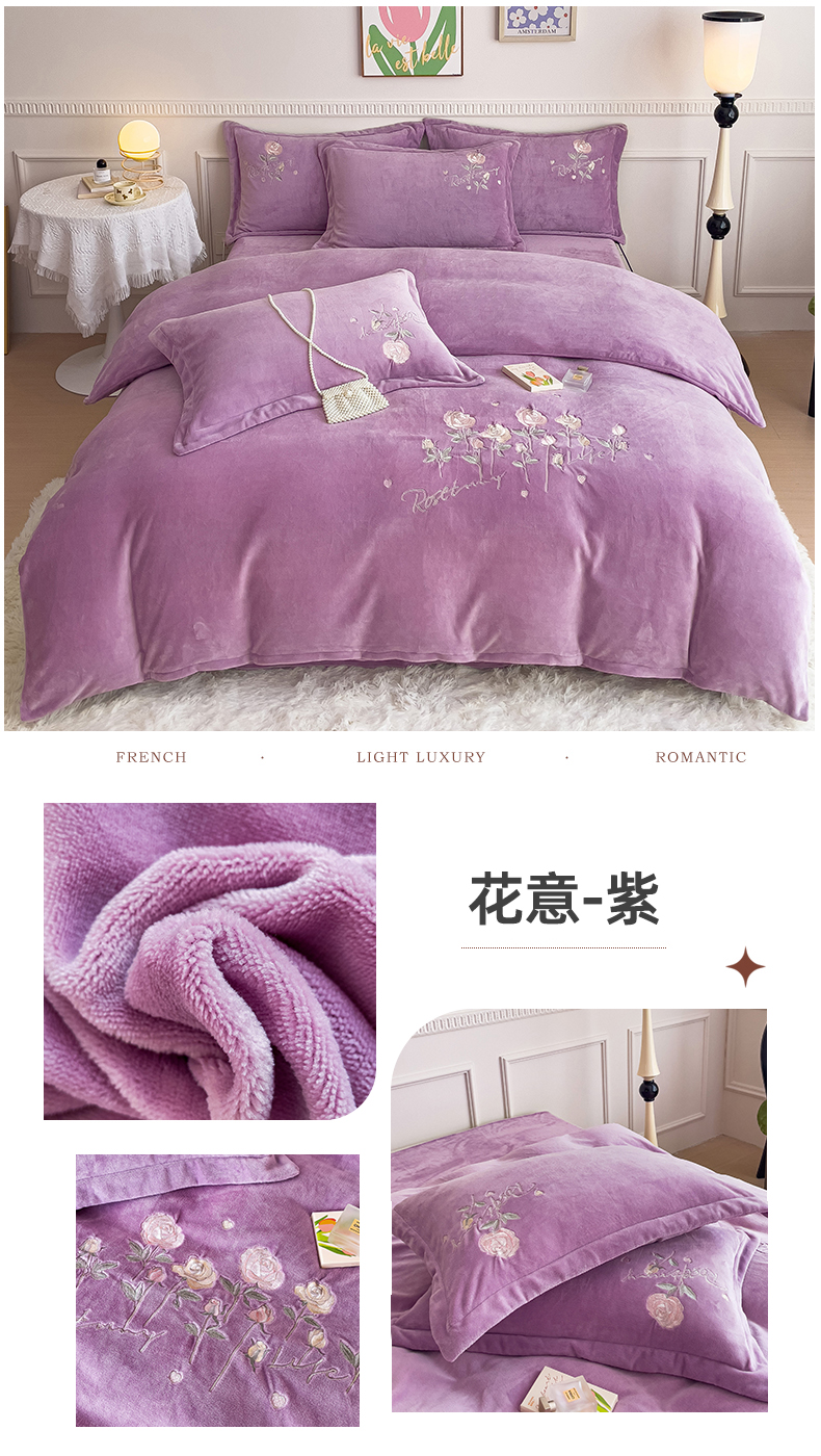 (总)云锦2023秋冬新品全棉磨毛绣花四件套缦芯,缦芯粉,缦芯灰,缦芯橘,缦芯蓝,缦芯紫