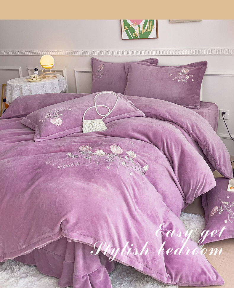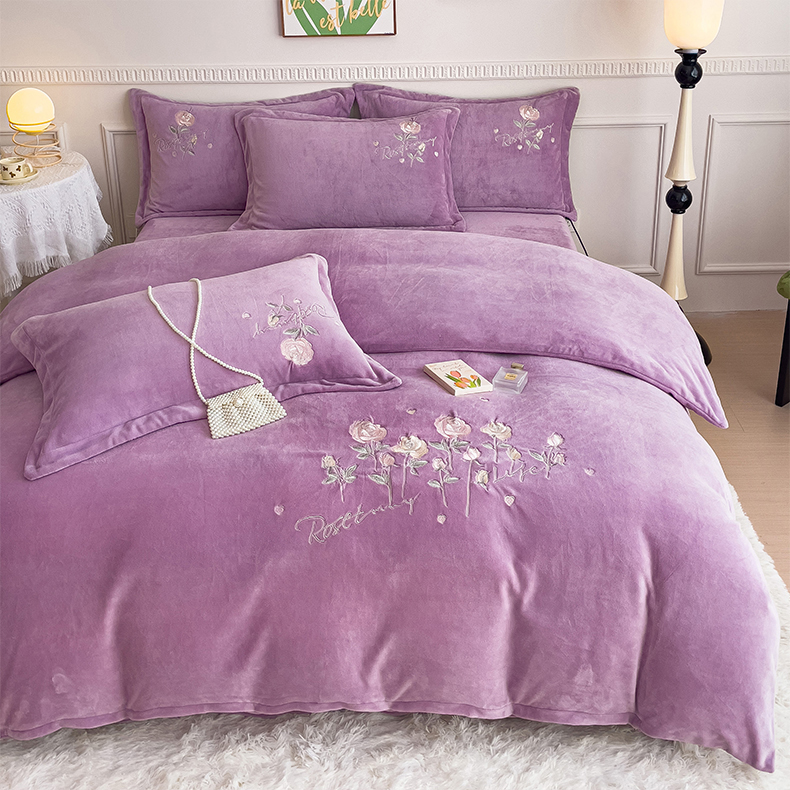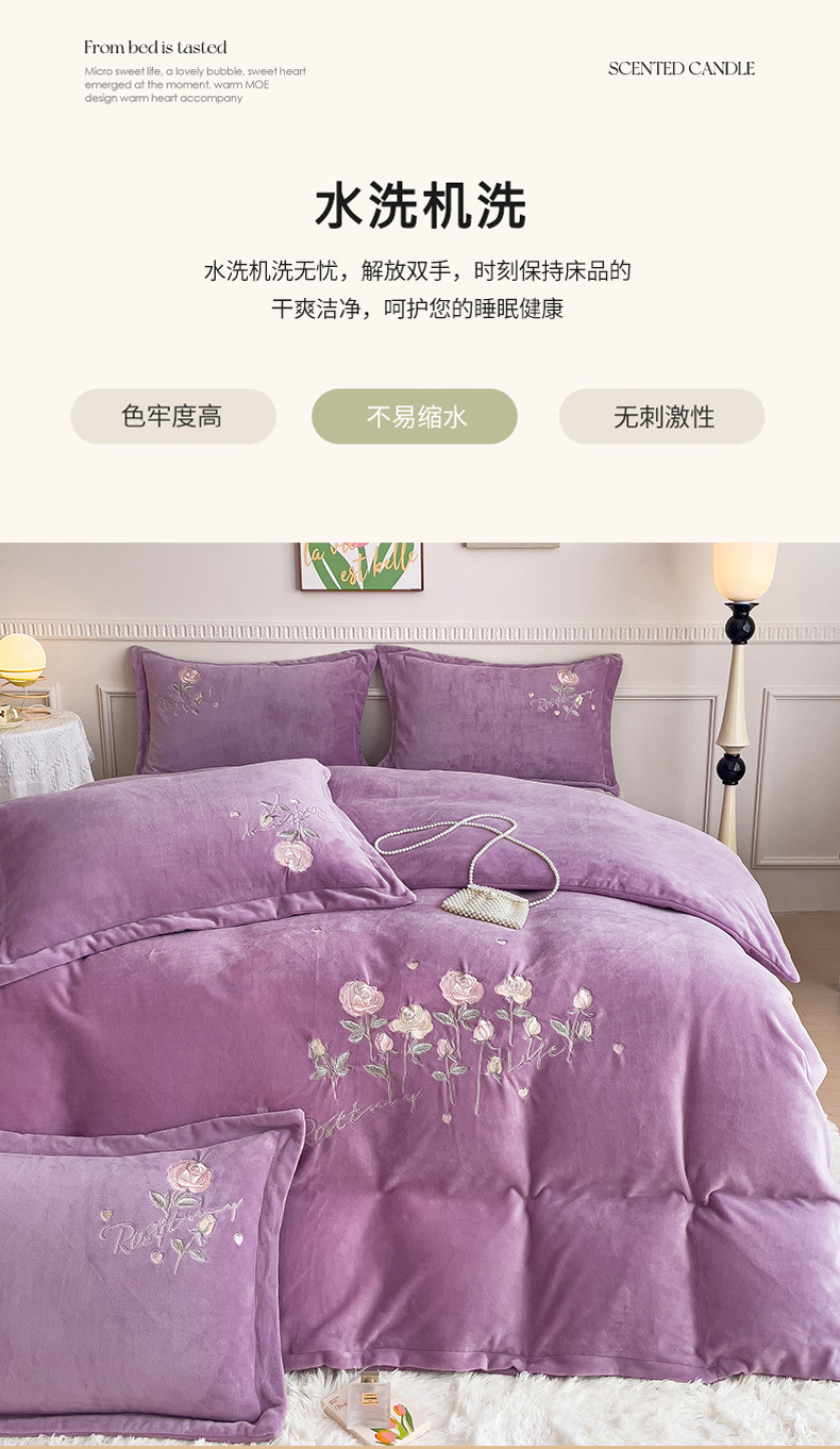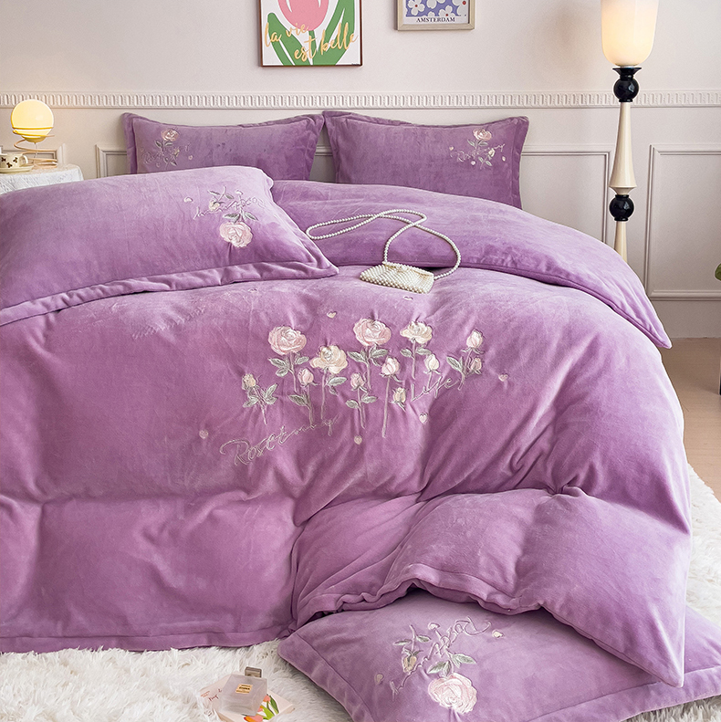 (总)云锦2023秋冬新品全棉磨毛绣花四件套缦芯,缦芯粉,缦芯灰,缦芯橘,缦芯蓝,缦芯紫