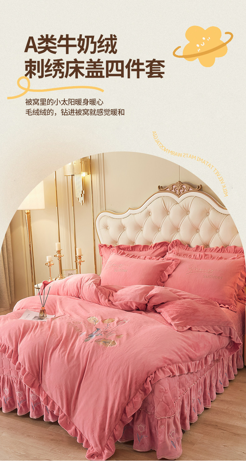 当前位置: 91家纺网 > 商品网购 > 床品套件 > 四件套 > 牛奶绒四件套 > 恒爱 2023新款A类牛奶绒羽毛床盖四件套 羽毛-豆沙红