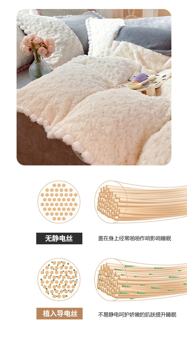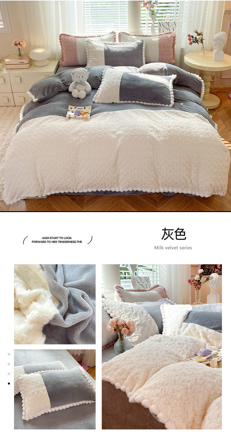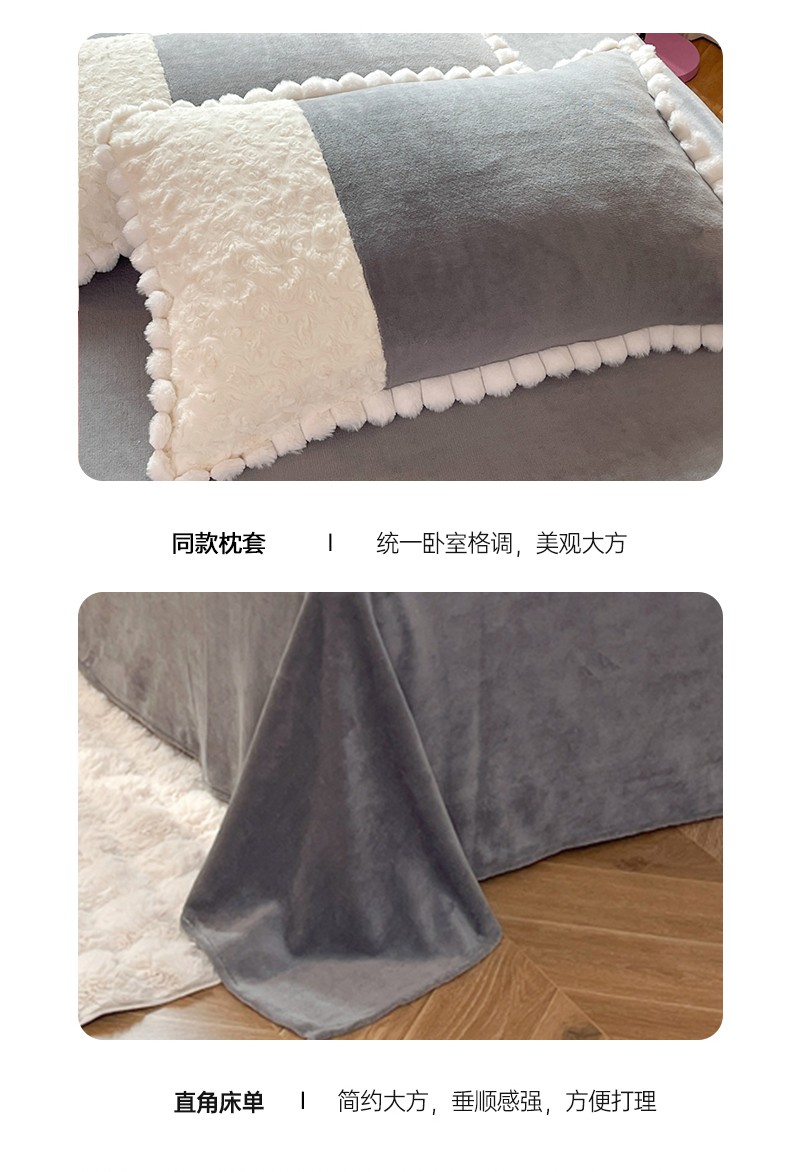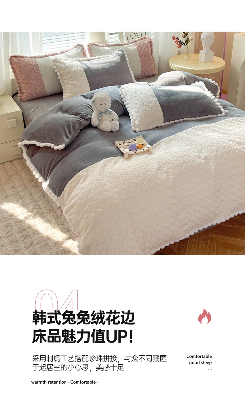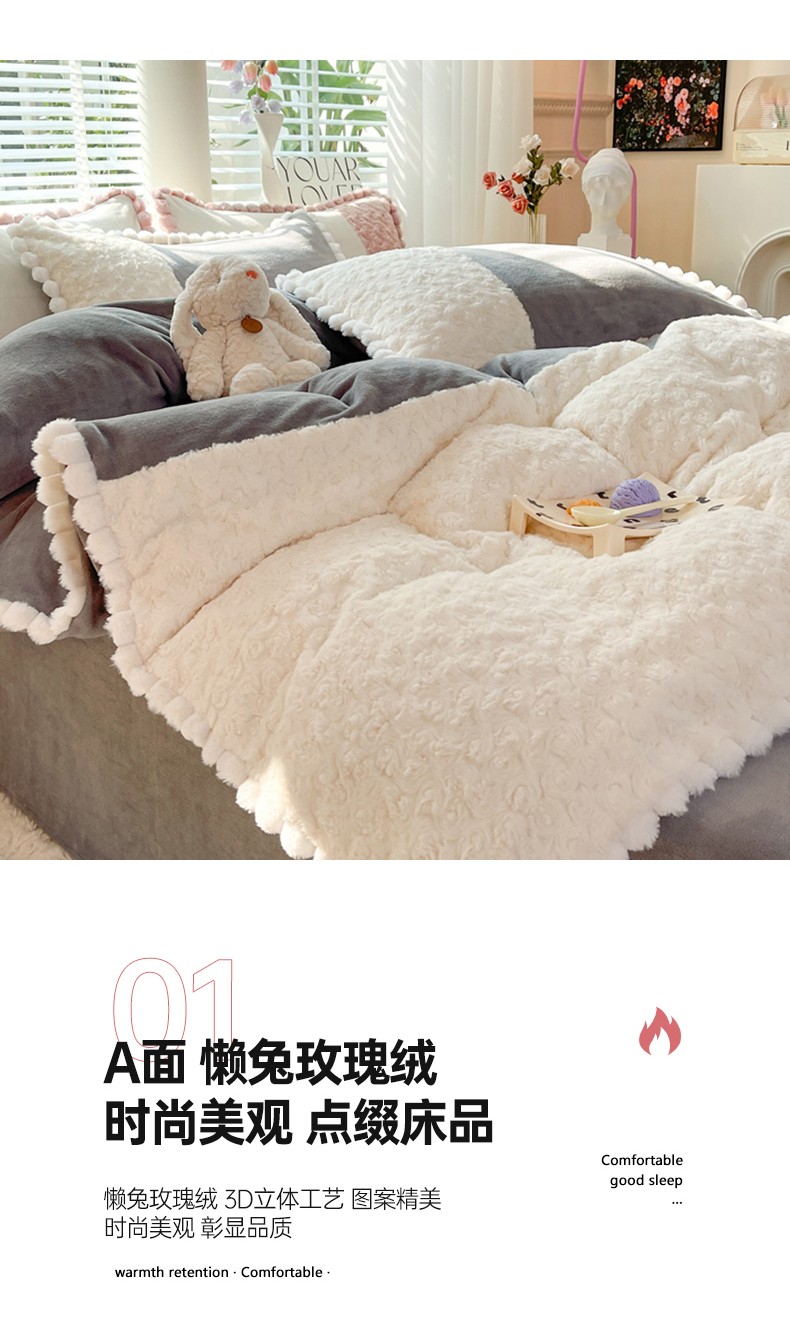 商品名称:艾米家居 2023新款秋冬懒兔玫瑰绒牛奶绒四件套 灰色
