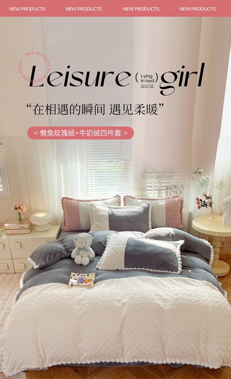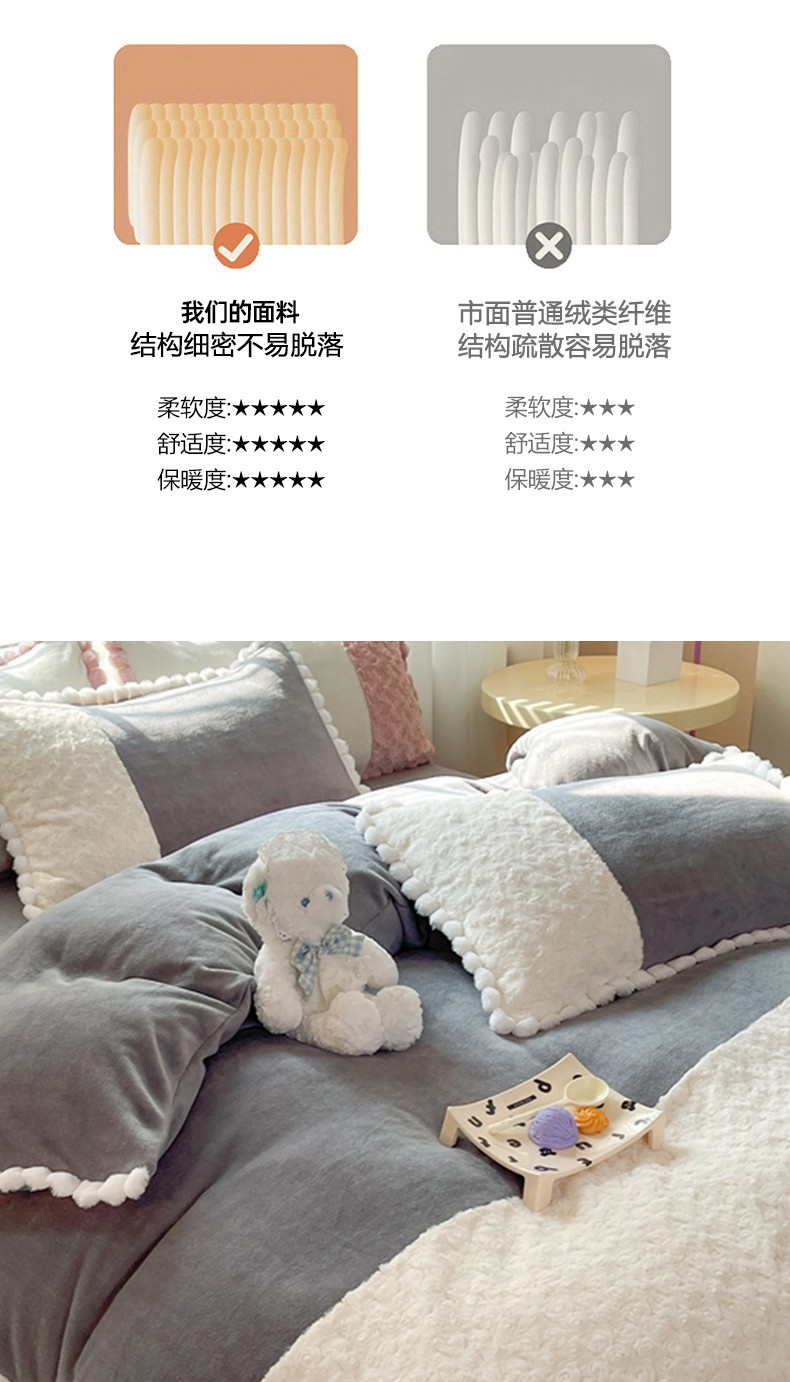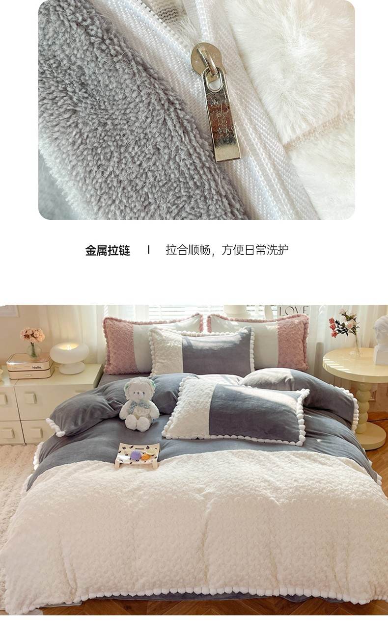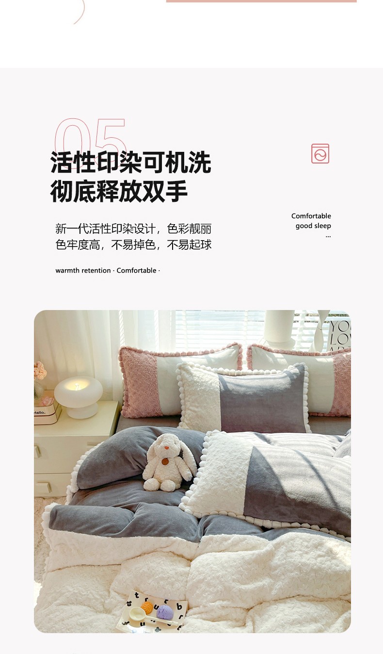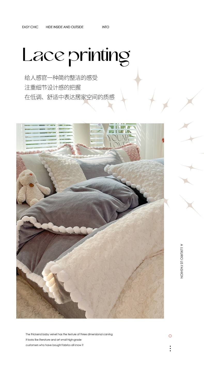 商品名称:艾米家居 2023新款秋冬懒兔玫瑰绒牛奶绒四件套 灰色