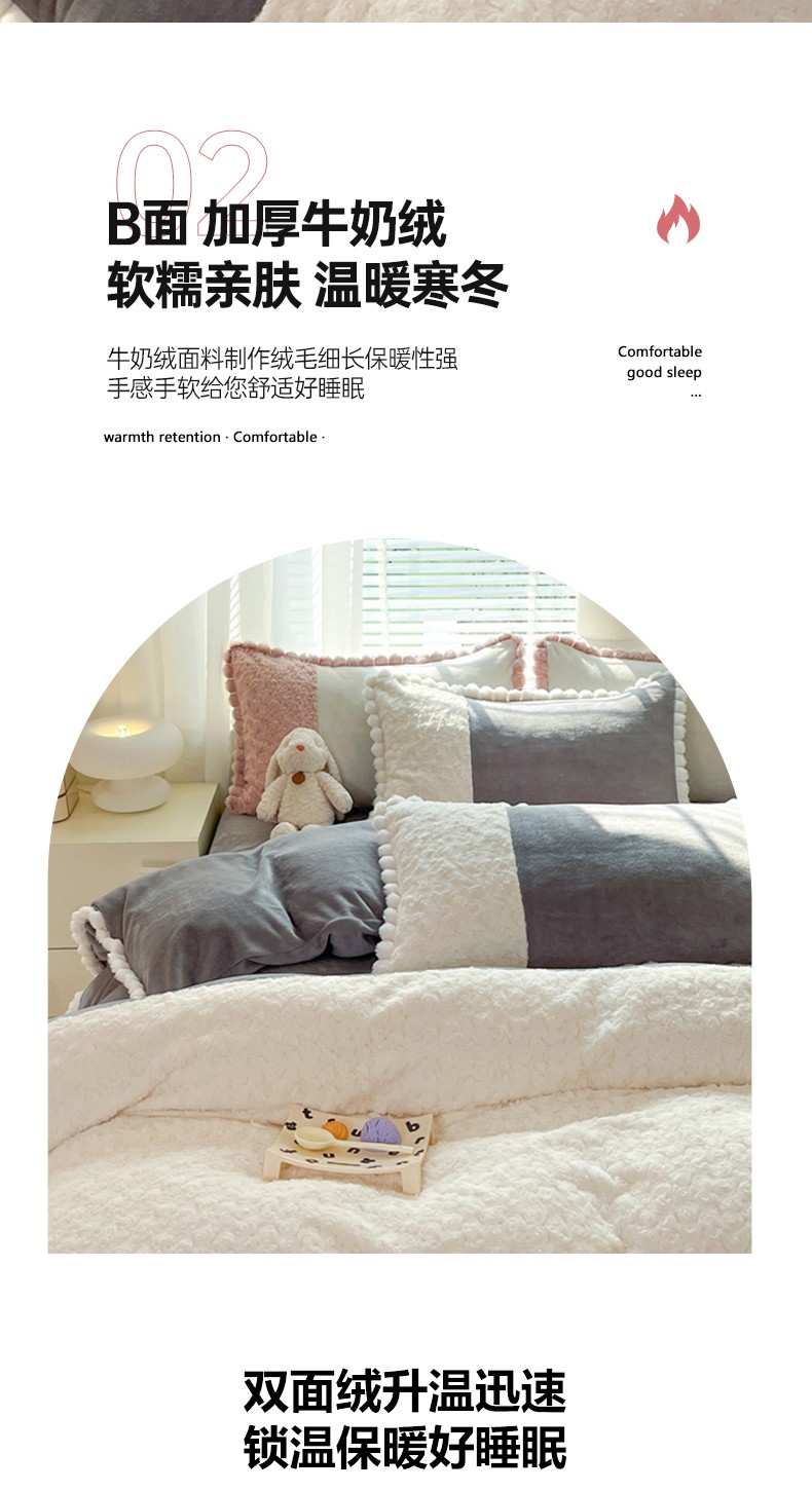 (总)艾米家居 2025秋冬新款牛奶绒泡泡印花花边四件套,豆沙条纹粉,蝴蝶花,太阳花