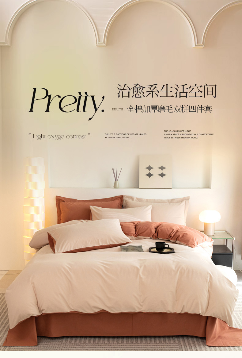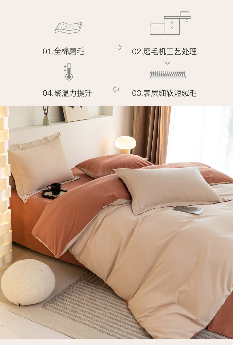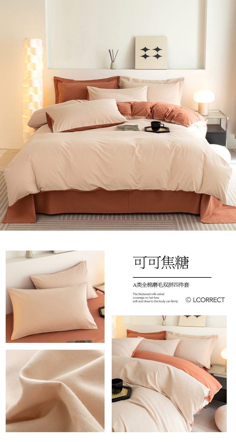 商品名称:寐居家纺 2023新款全棉磨毛纯色四套件 可可焦糖