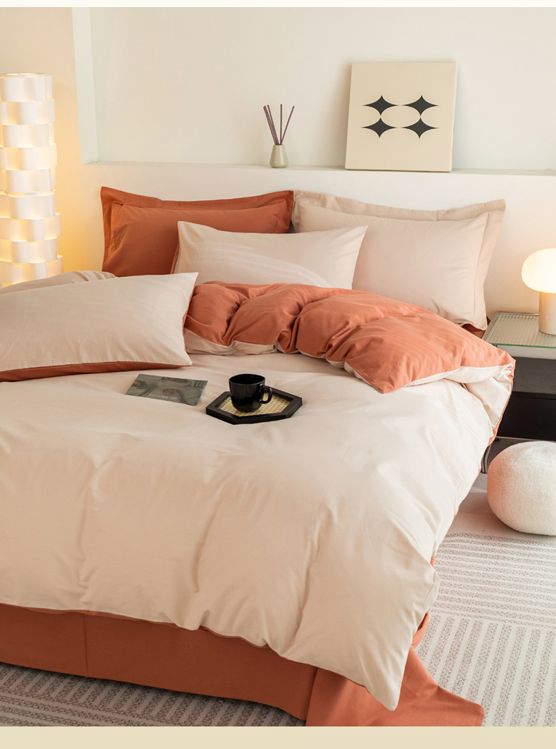 寐居家纺 2023新款全棉磨毛纯色四套件 可可焦糖