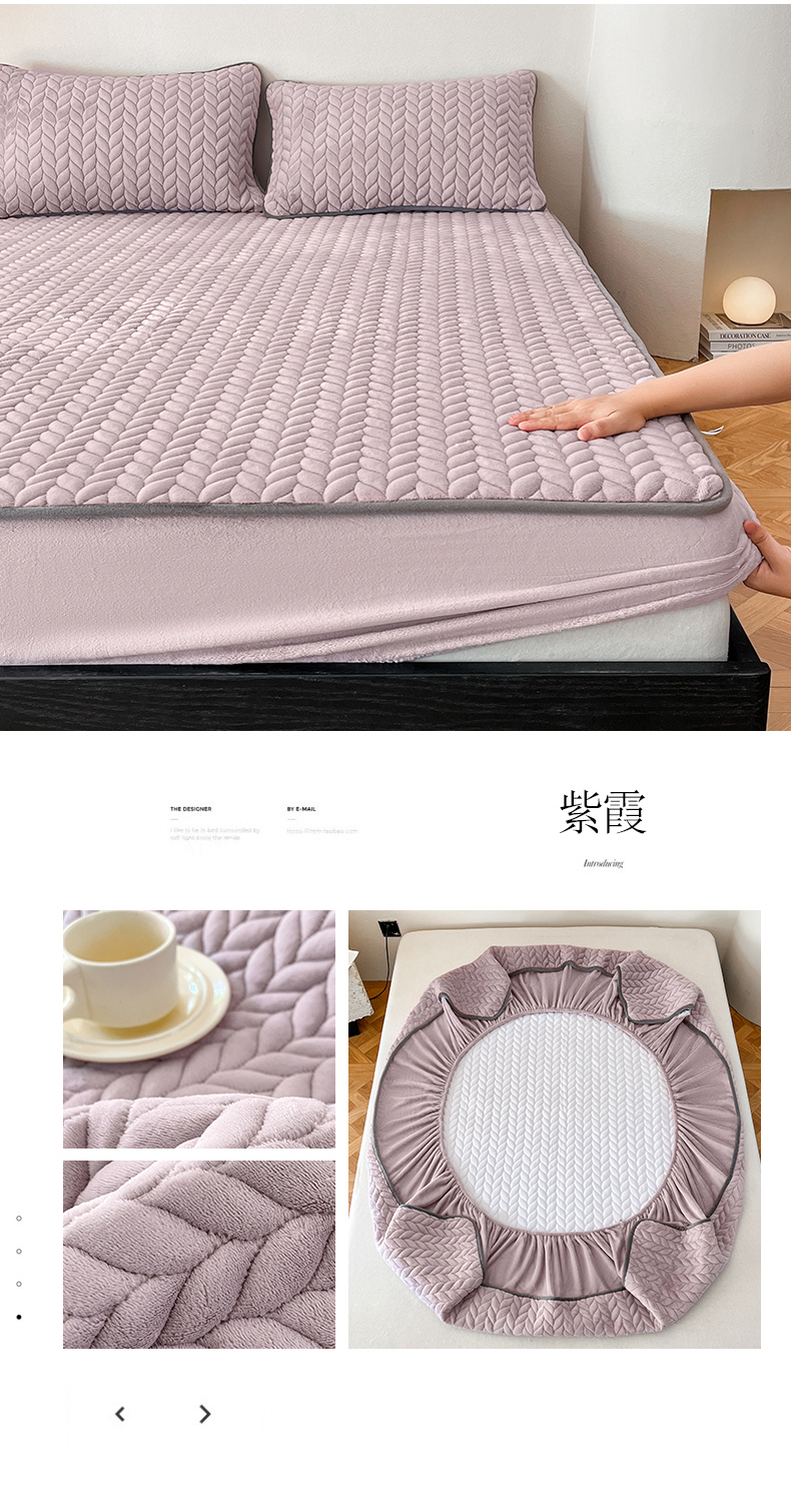 商品名称:欧邦 新款轻奢牛奶绒刺绣夹棉床笠三件套 紫霞