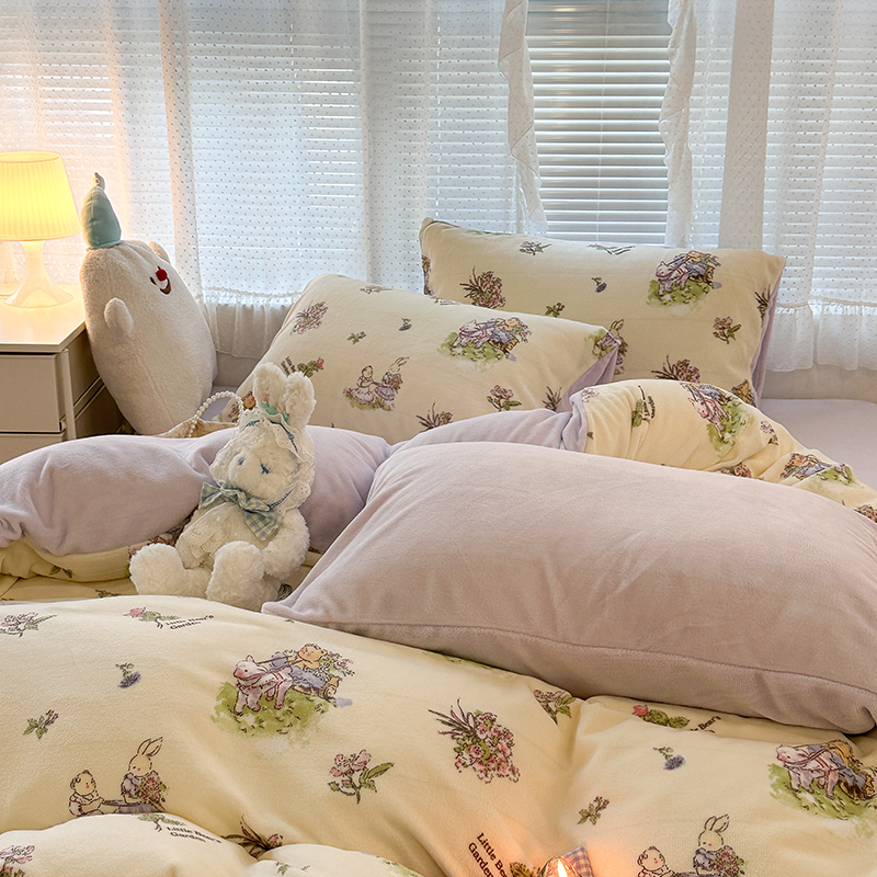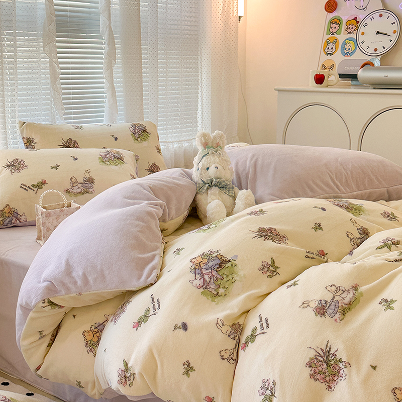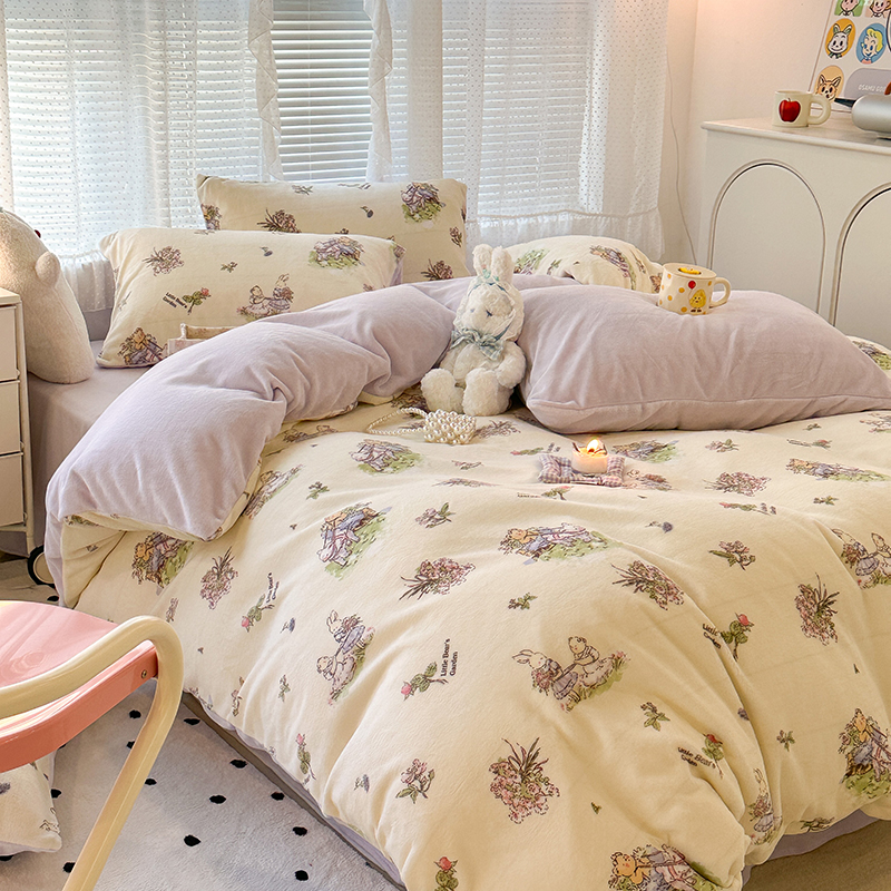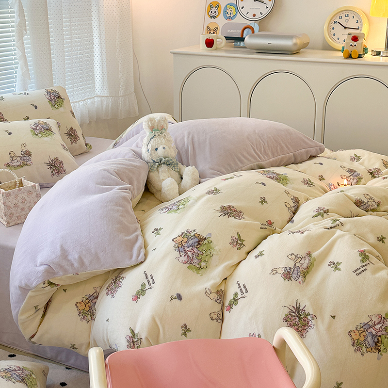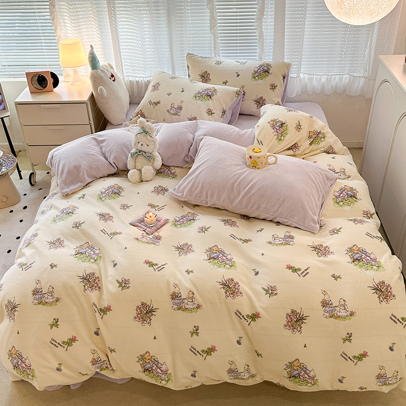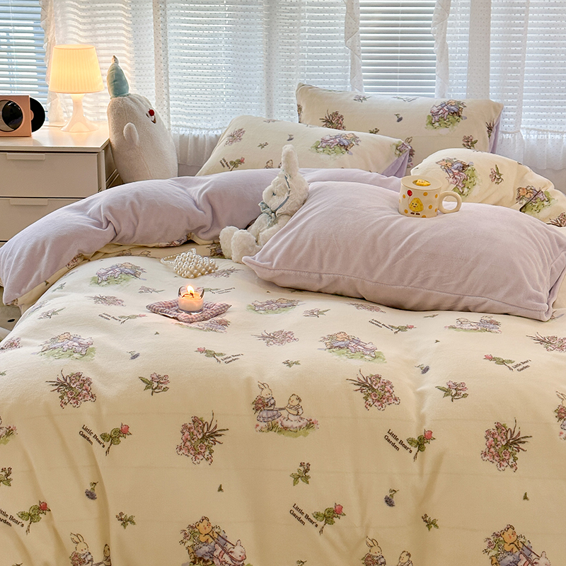 (总)昔可家纺 2024新款印花牛奶绒四件套系列-洛丽塔风,萝莉小兔,小熊烘焙屋,小熊玩偶屋