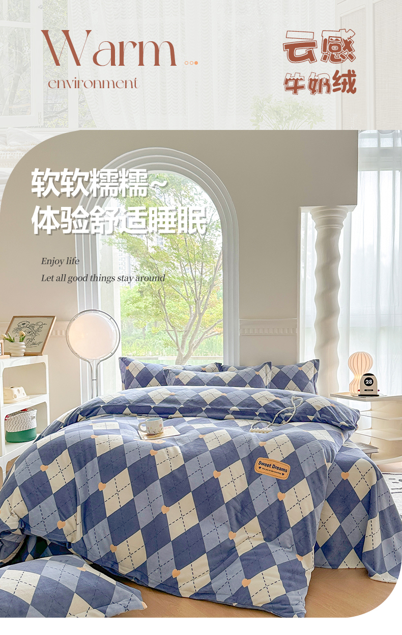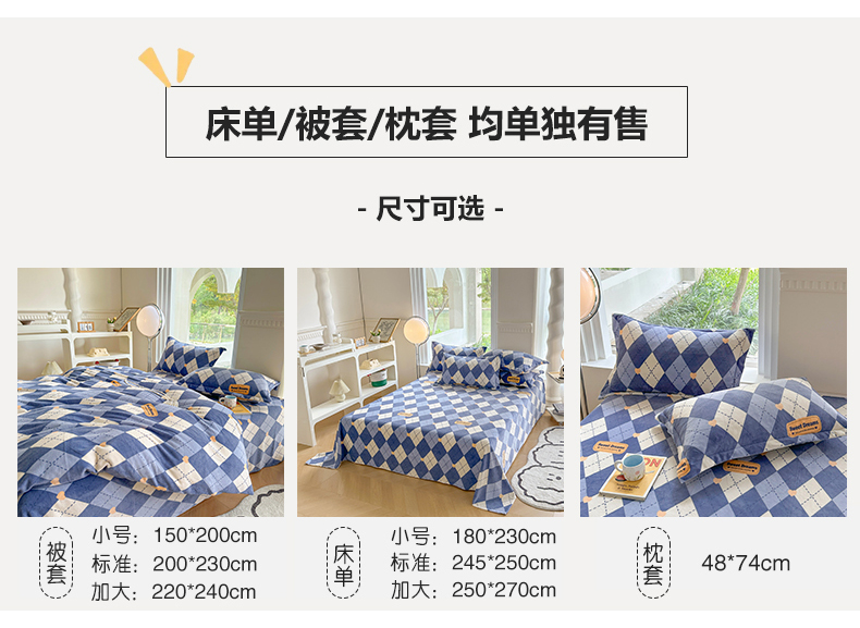 商品名称:2024秋冬新款牛奶绒单被套 英伦时光